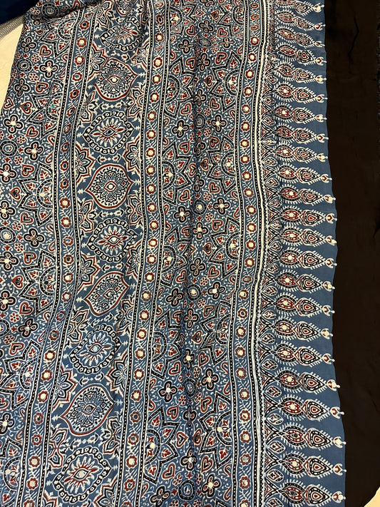 Ajrakh handblock print sarees are traditional, intricately designed garments from local artisans,...