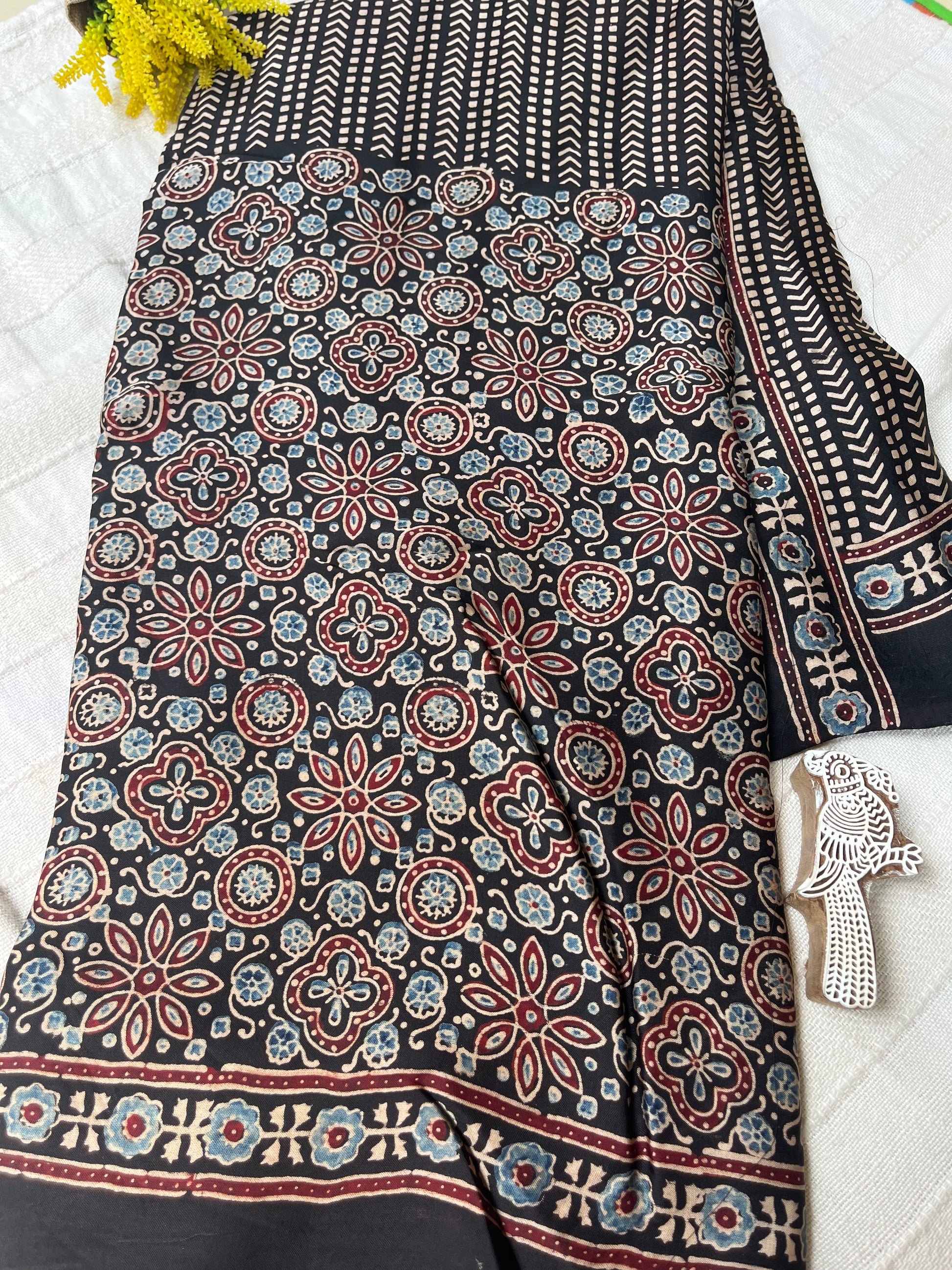 Discover the exquisite elegance of our Ajrakh modal silk sarees, where traditional artistry meets modern sophistication.