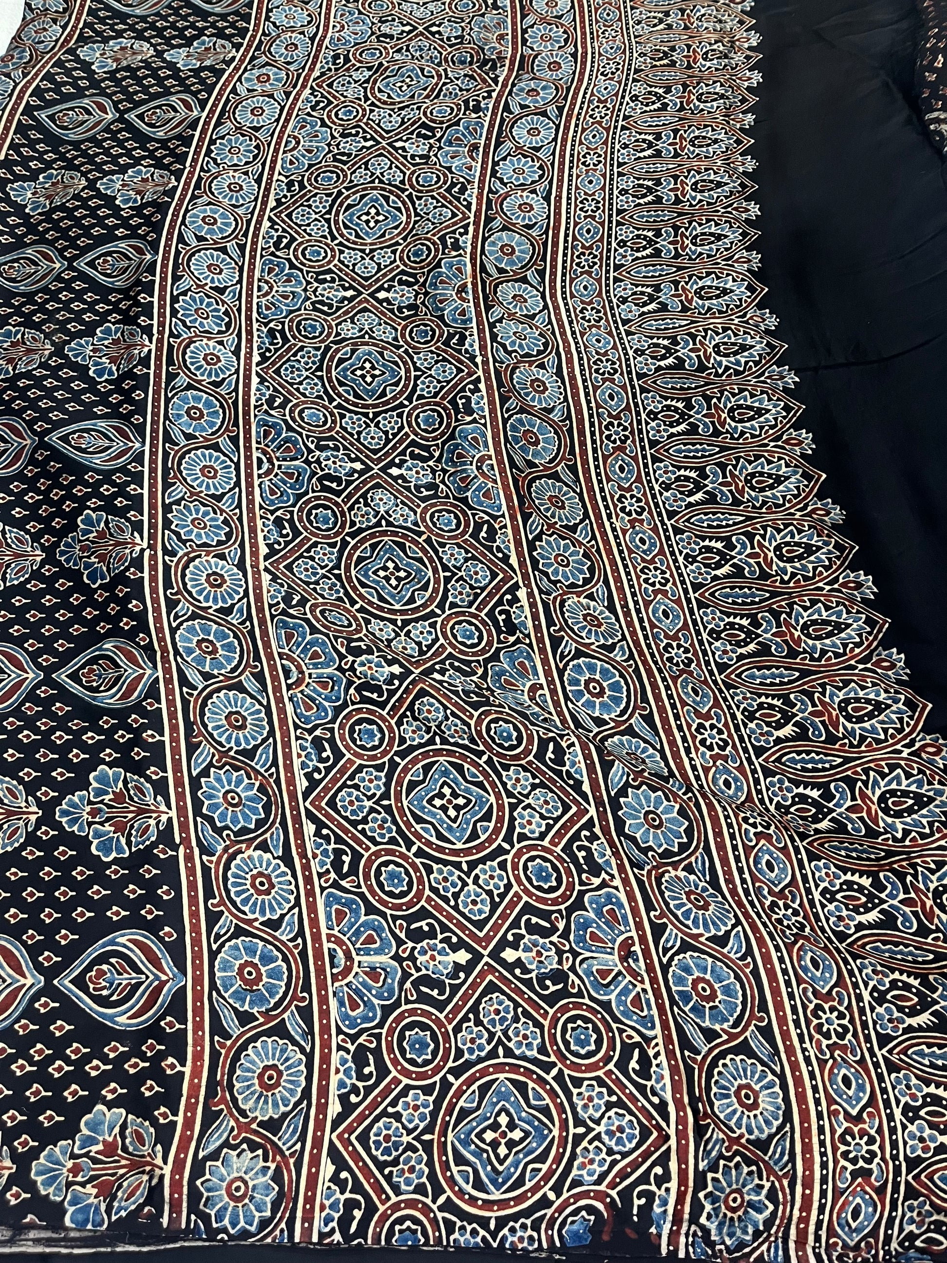 Discover the exquisite elegance of our Ajrakh modal silk sarees, where traditional artistry meets modern sophistication.