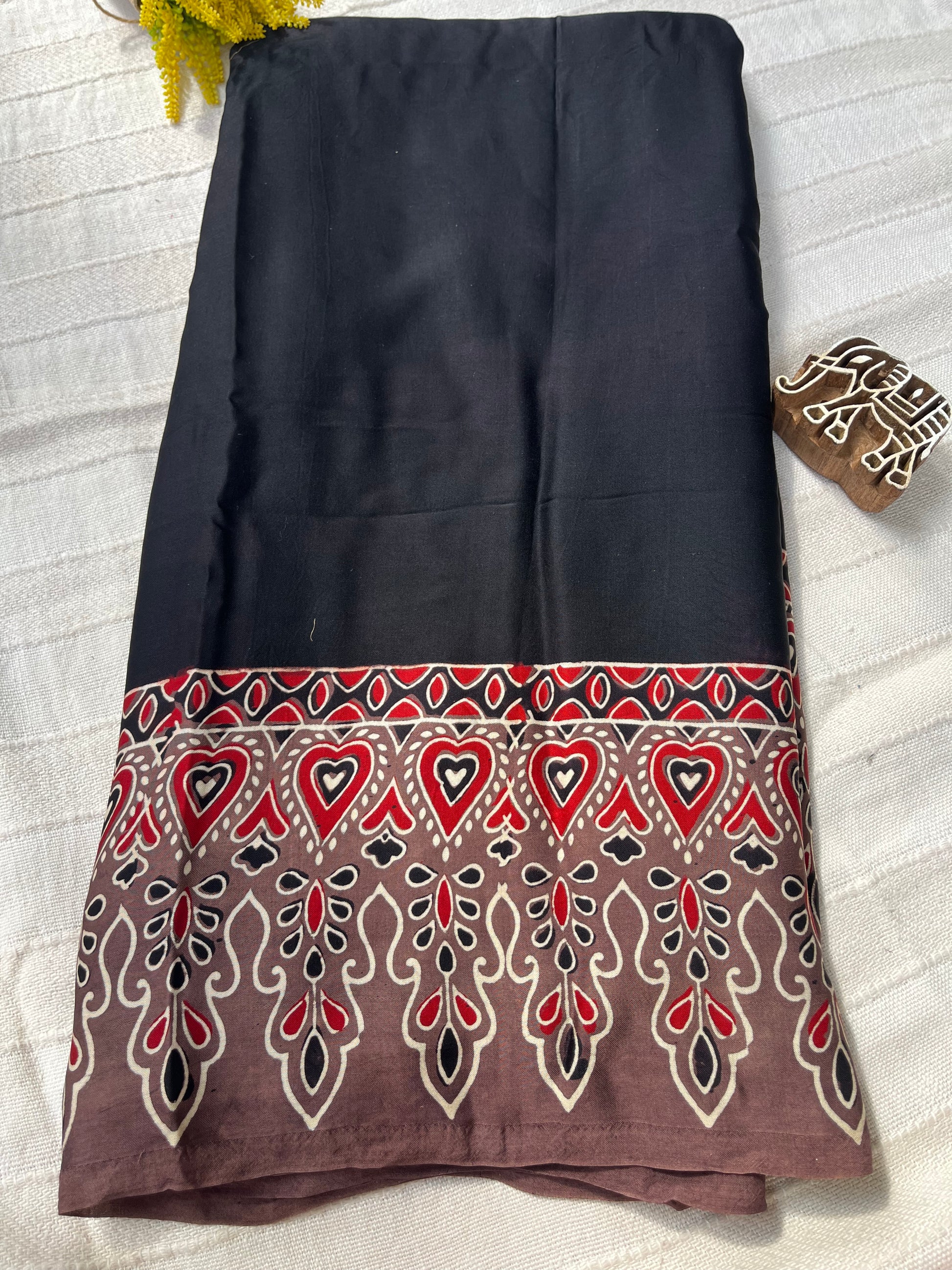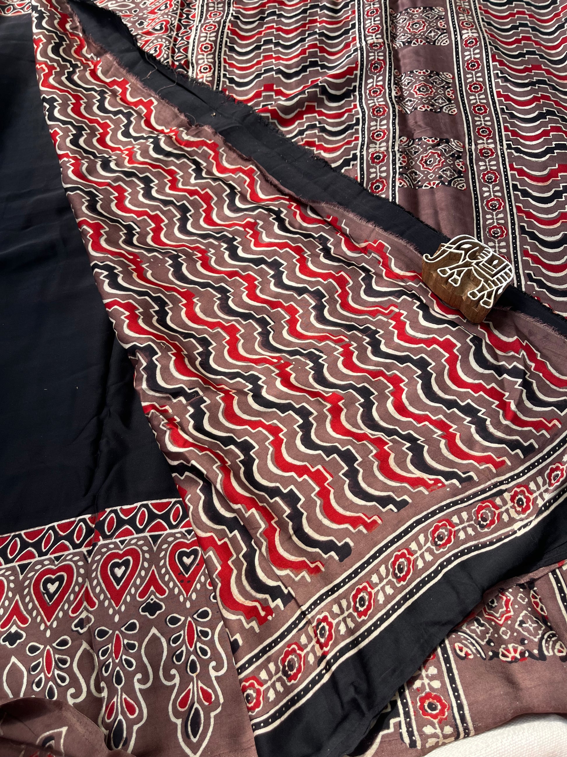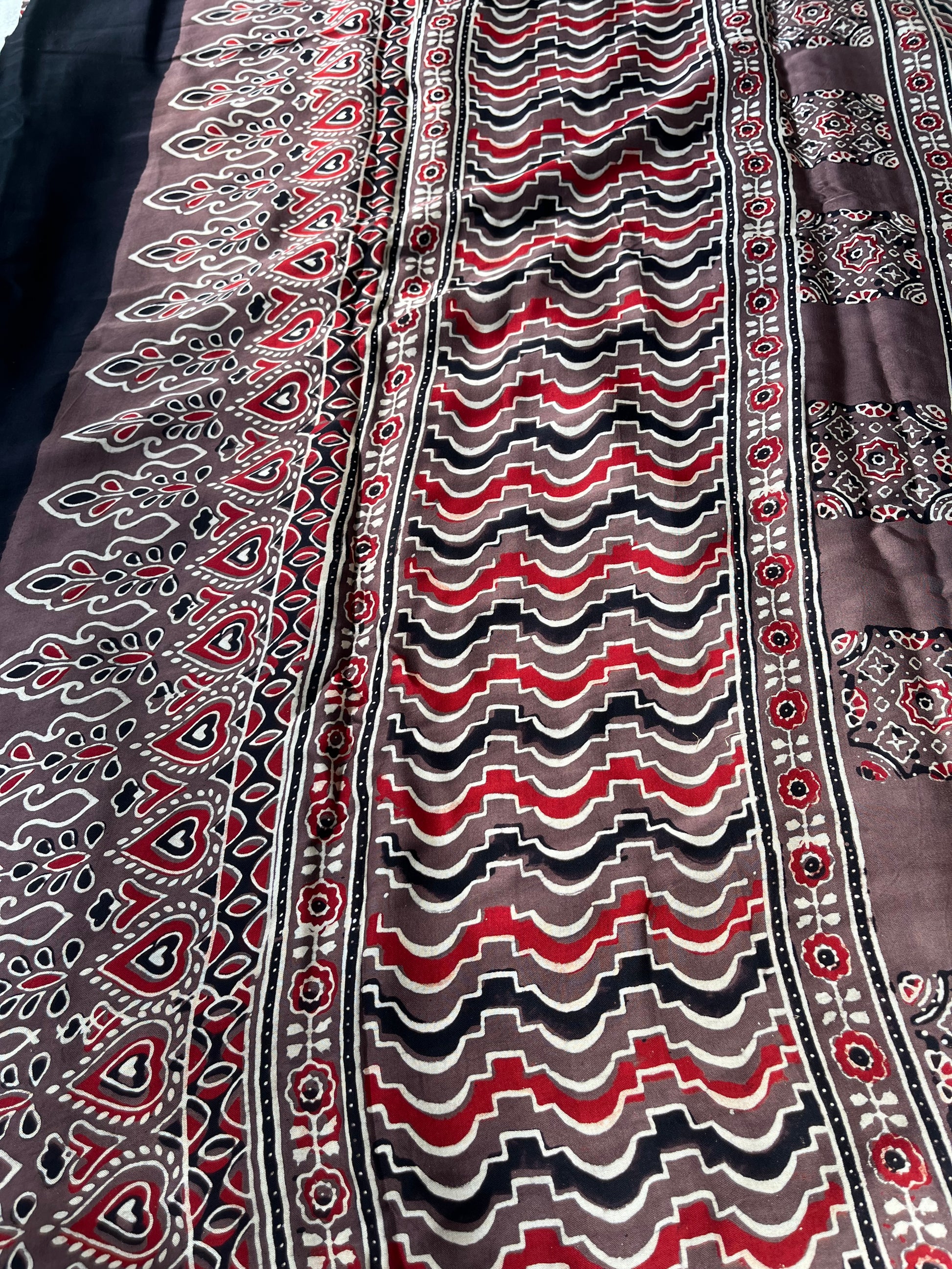 Discover the exquisite elegance of our Ajrakh modal silk sarees, where traditional artistry meets modern sophistication.