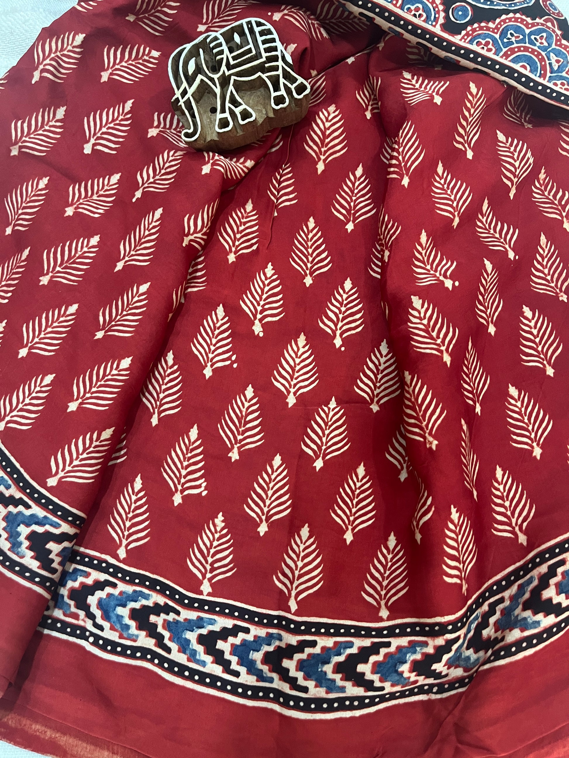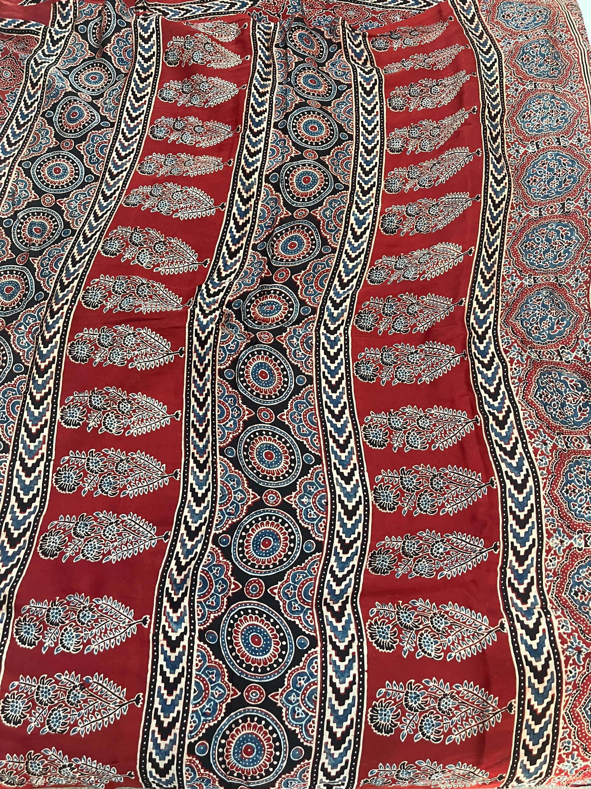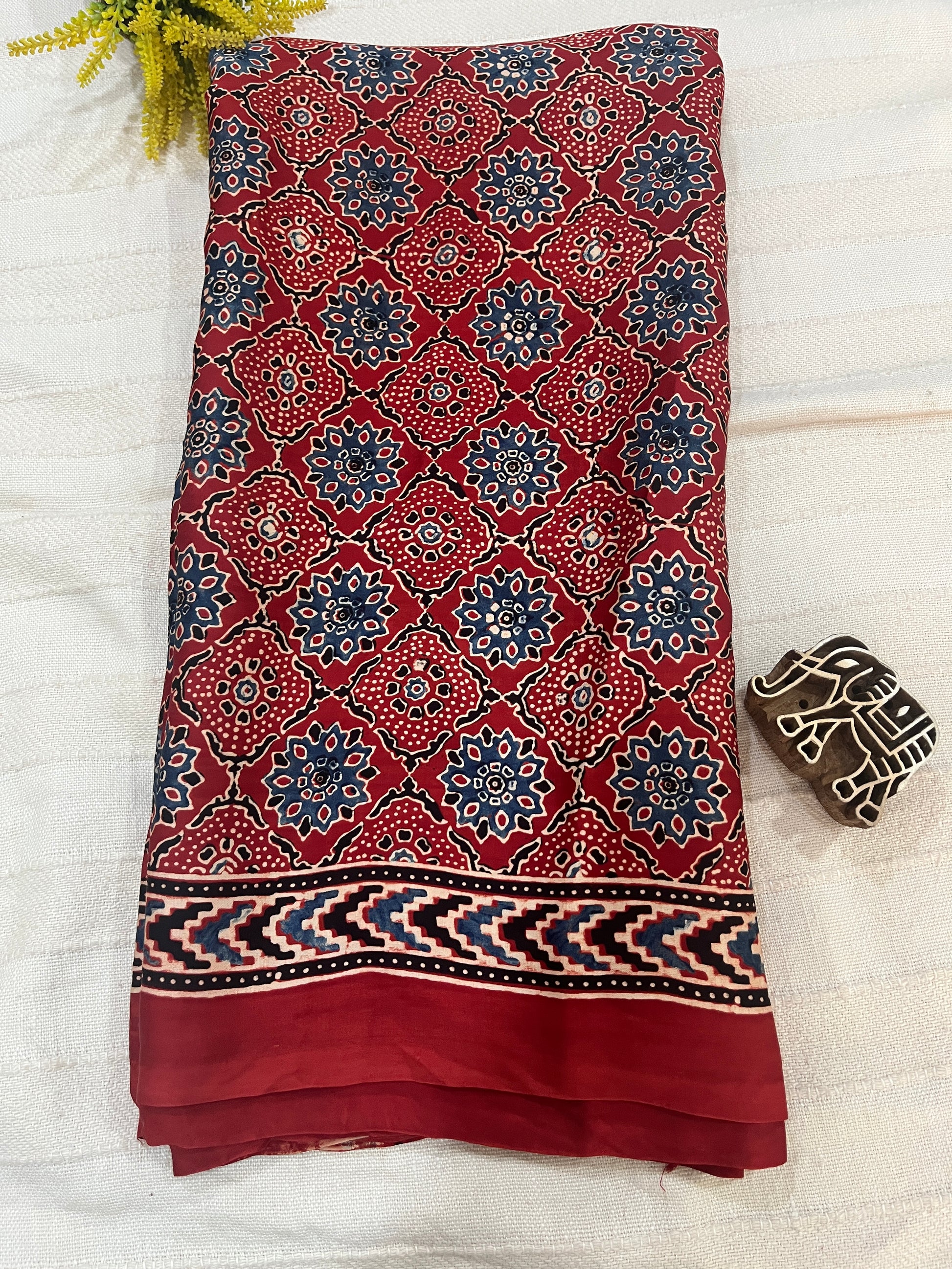 Discover the exquisite elegance of our Ajrakh modal silk sarees, where traditional artistry meets modern sophistication.
