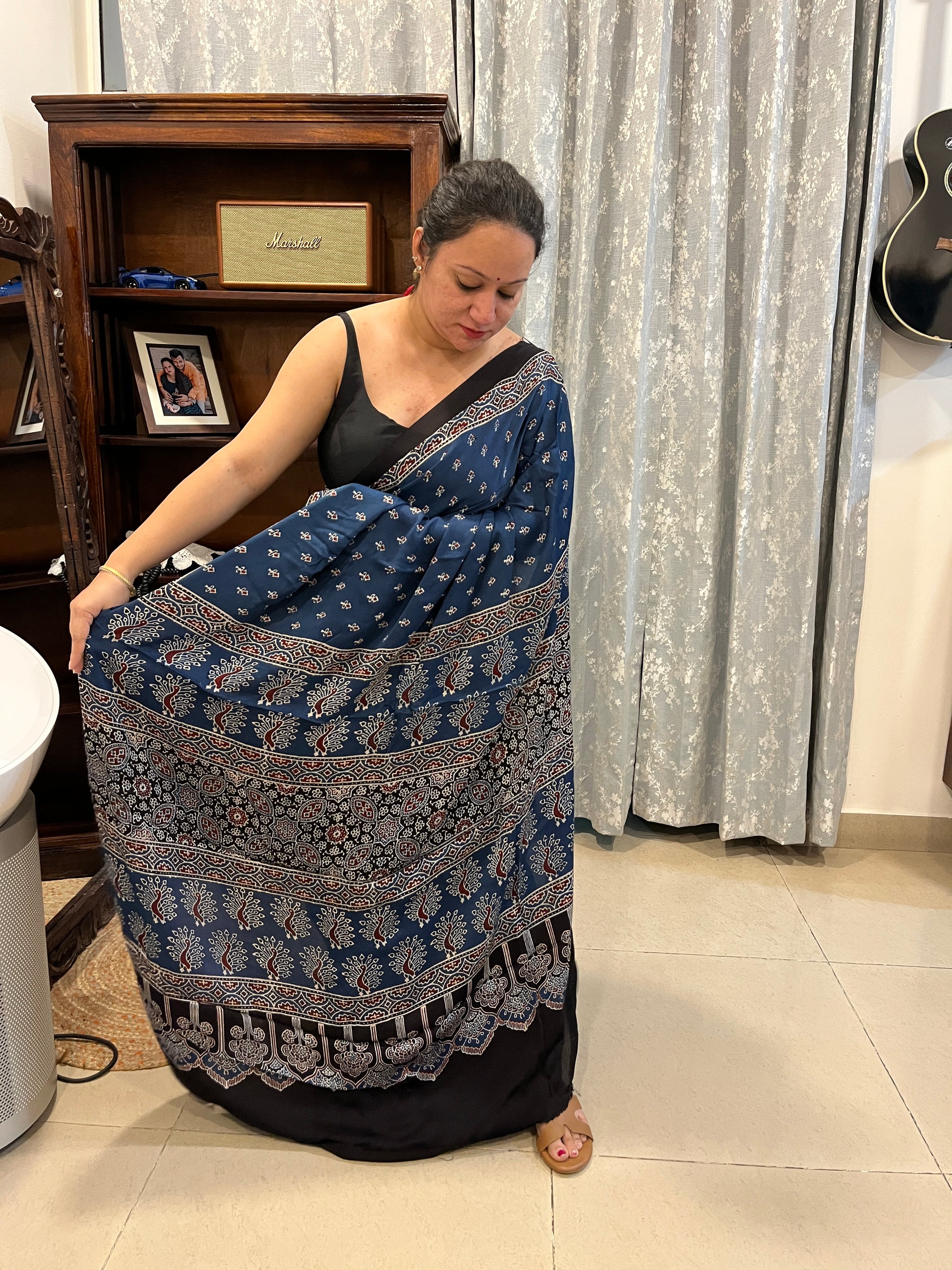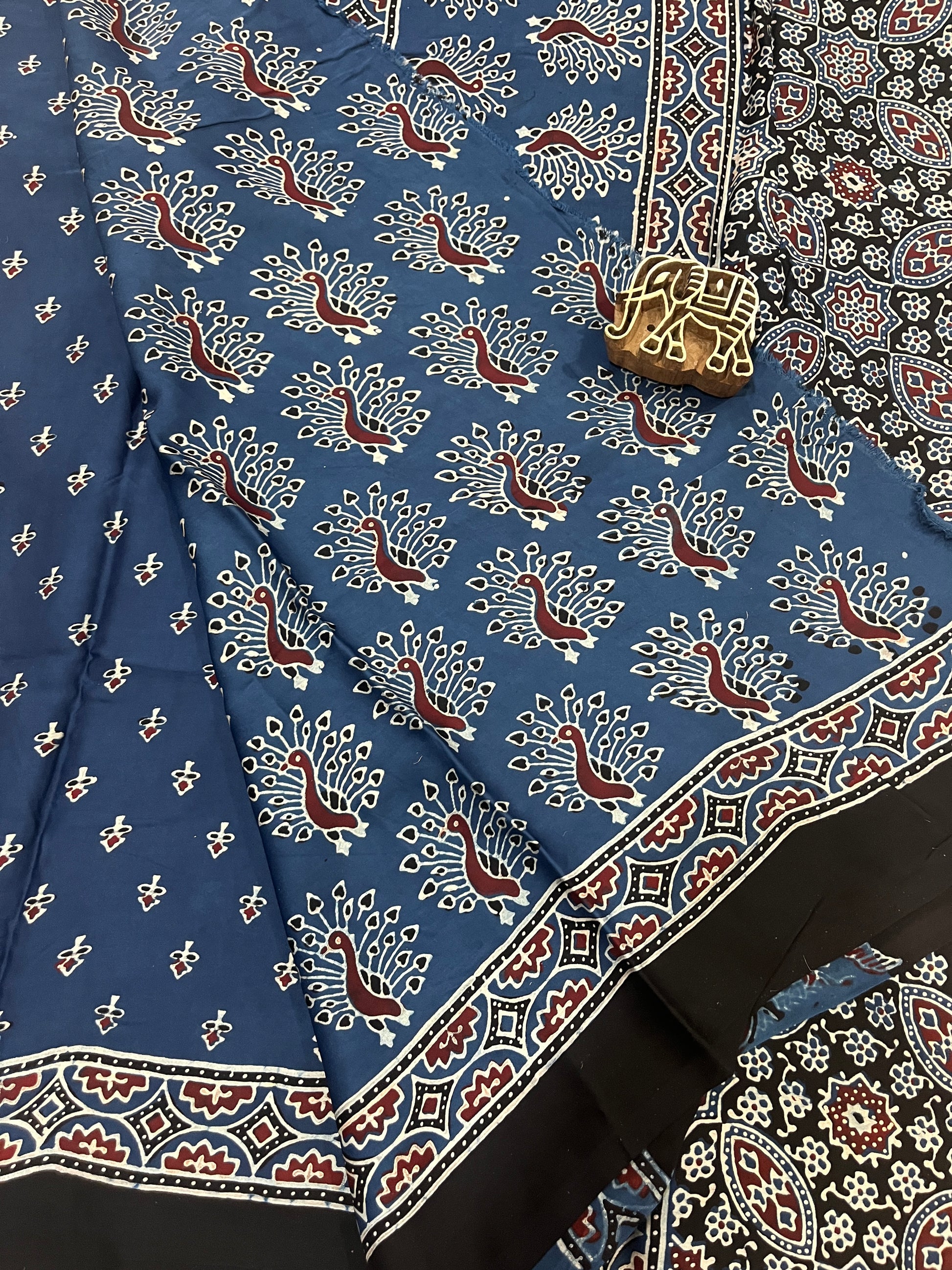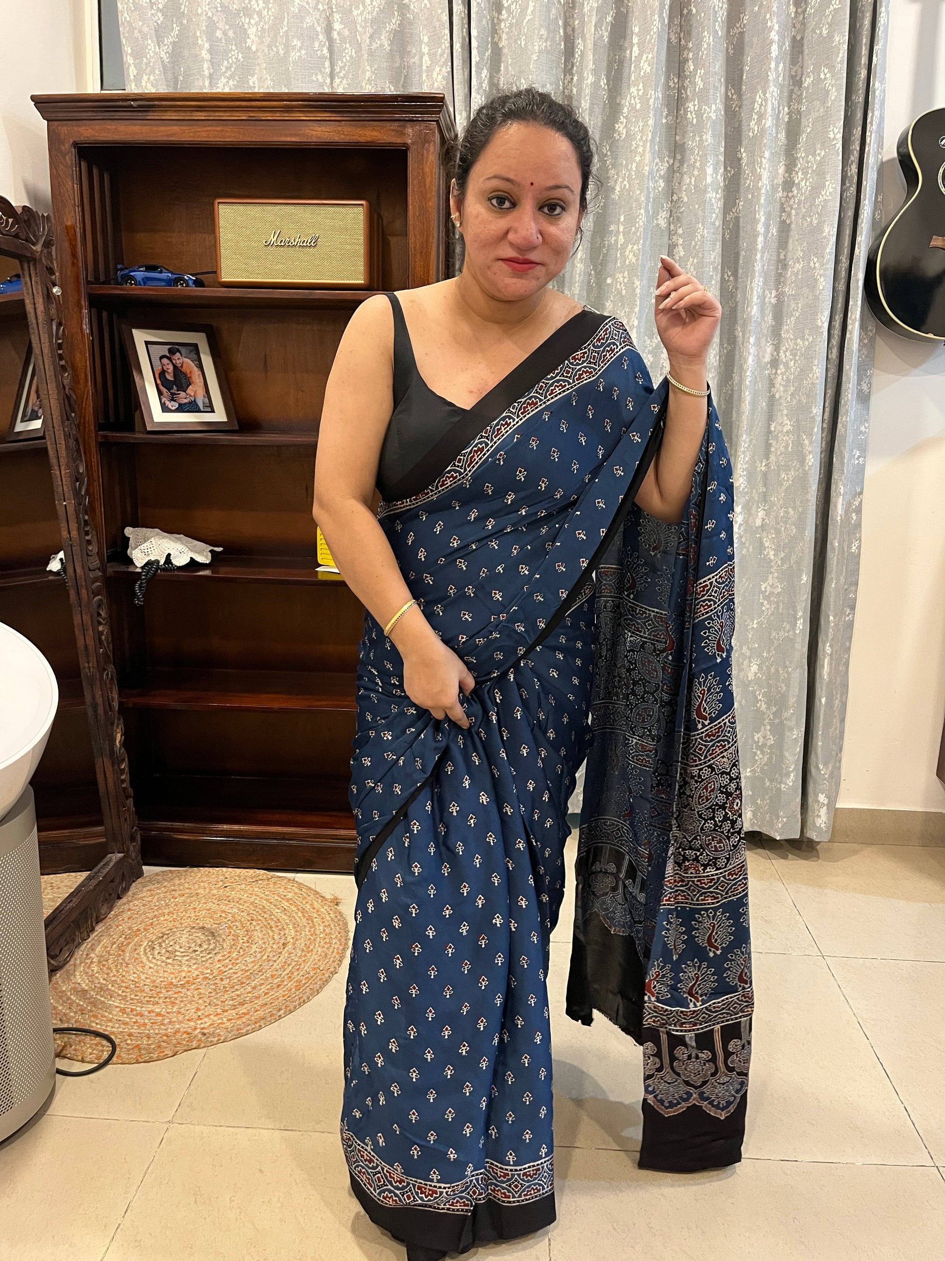 Discover the exquisite elegance of our Ajrakh modal silk sarees, where traditional artistry meets modern sophistication.