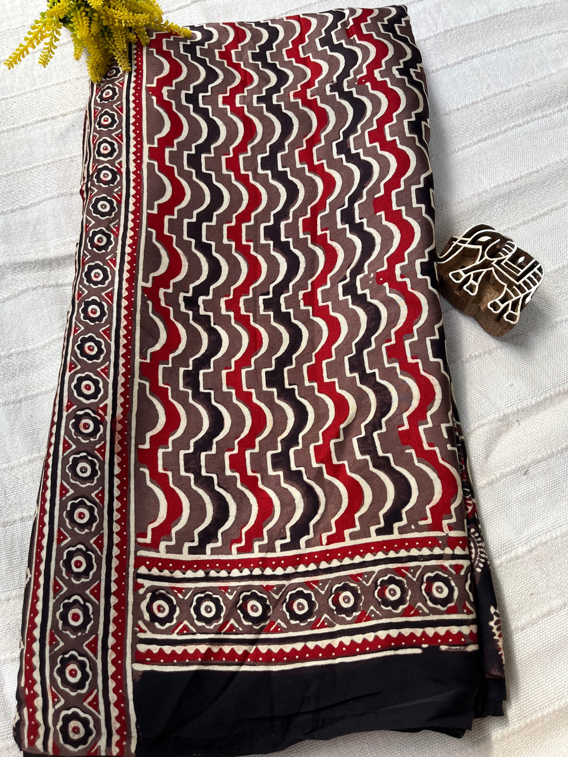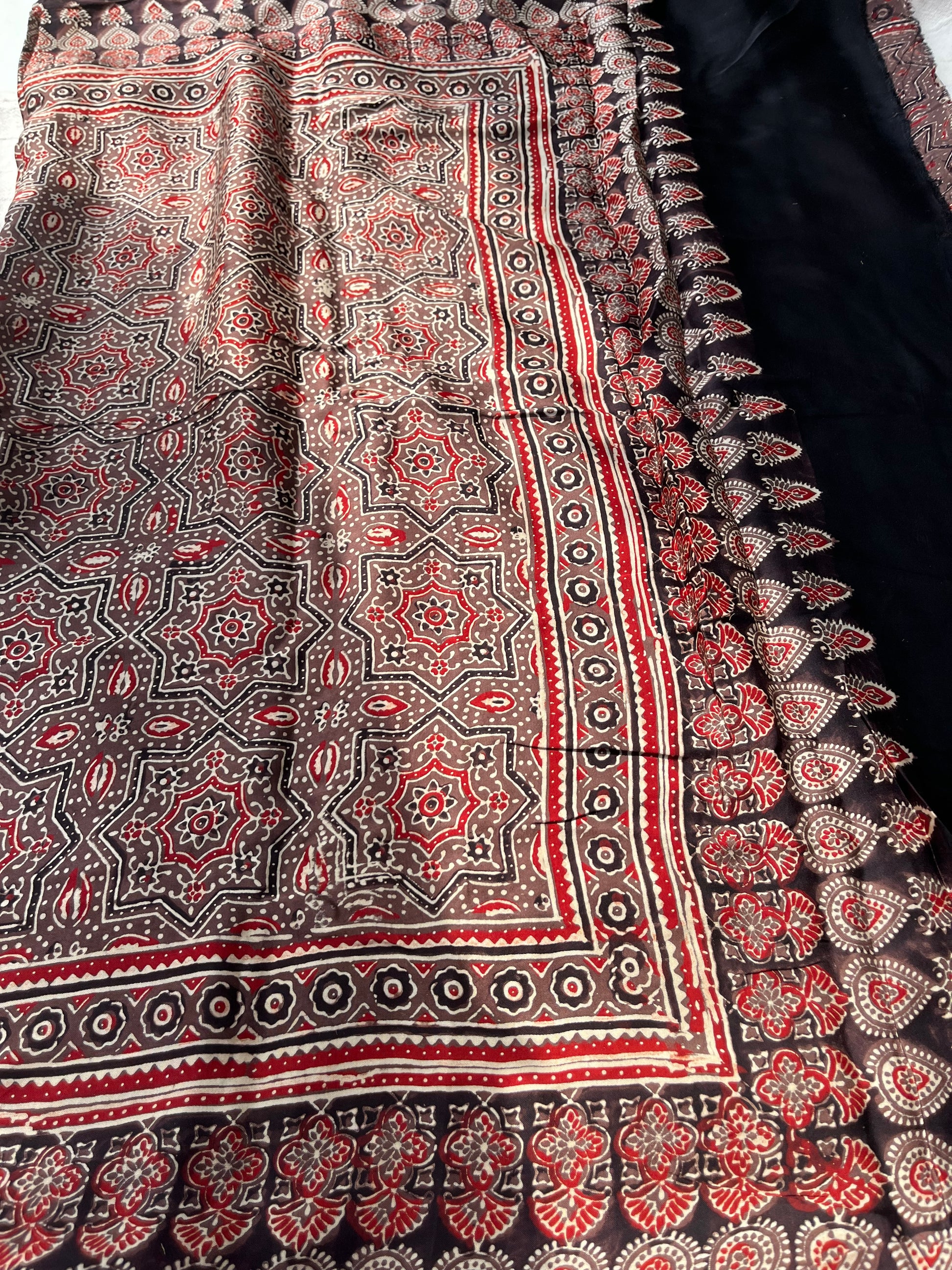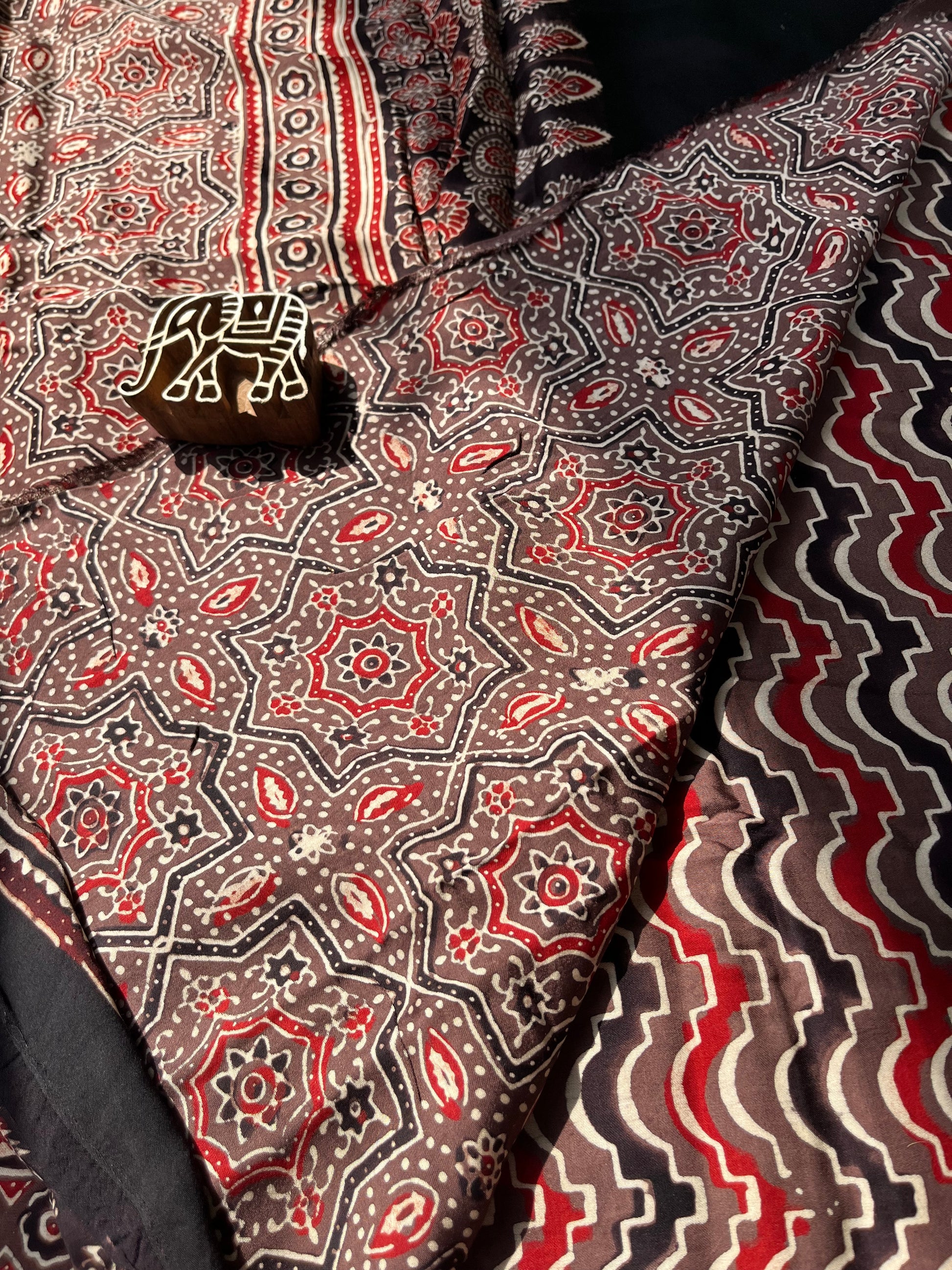 Discover the exquisite elegance of our Ajrakh modal silk sarees, where traditional artistry meets modern sophistication.