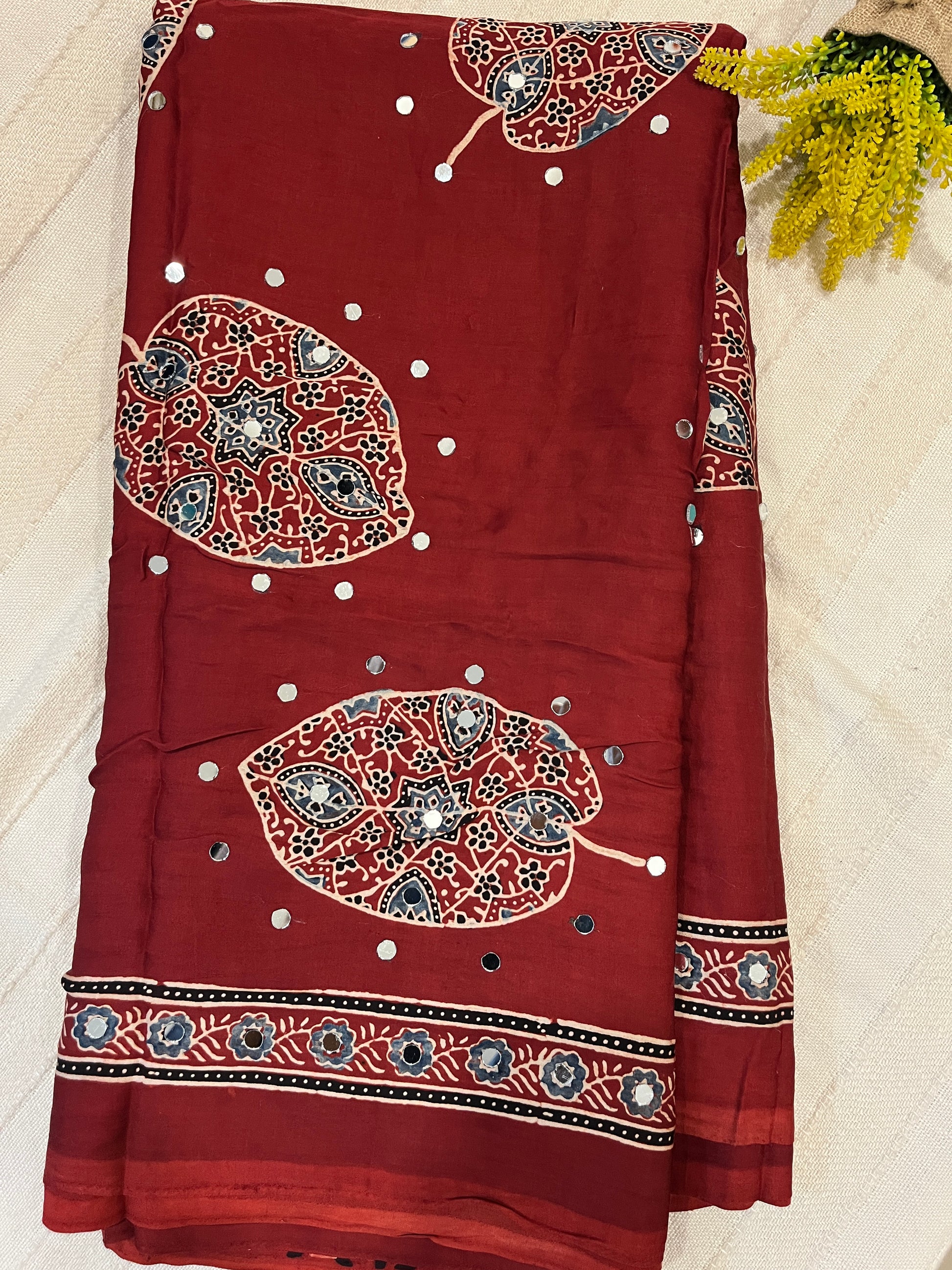 Mirror Work Ajrakh Modal Silk Sarees