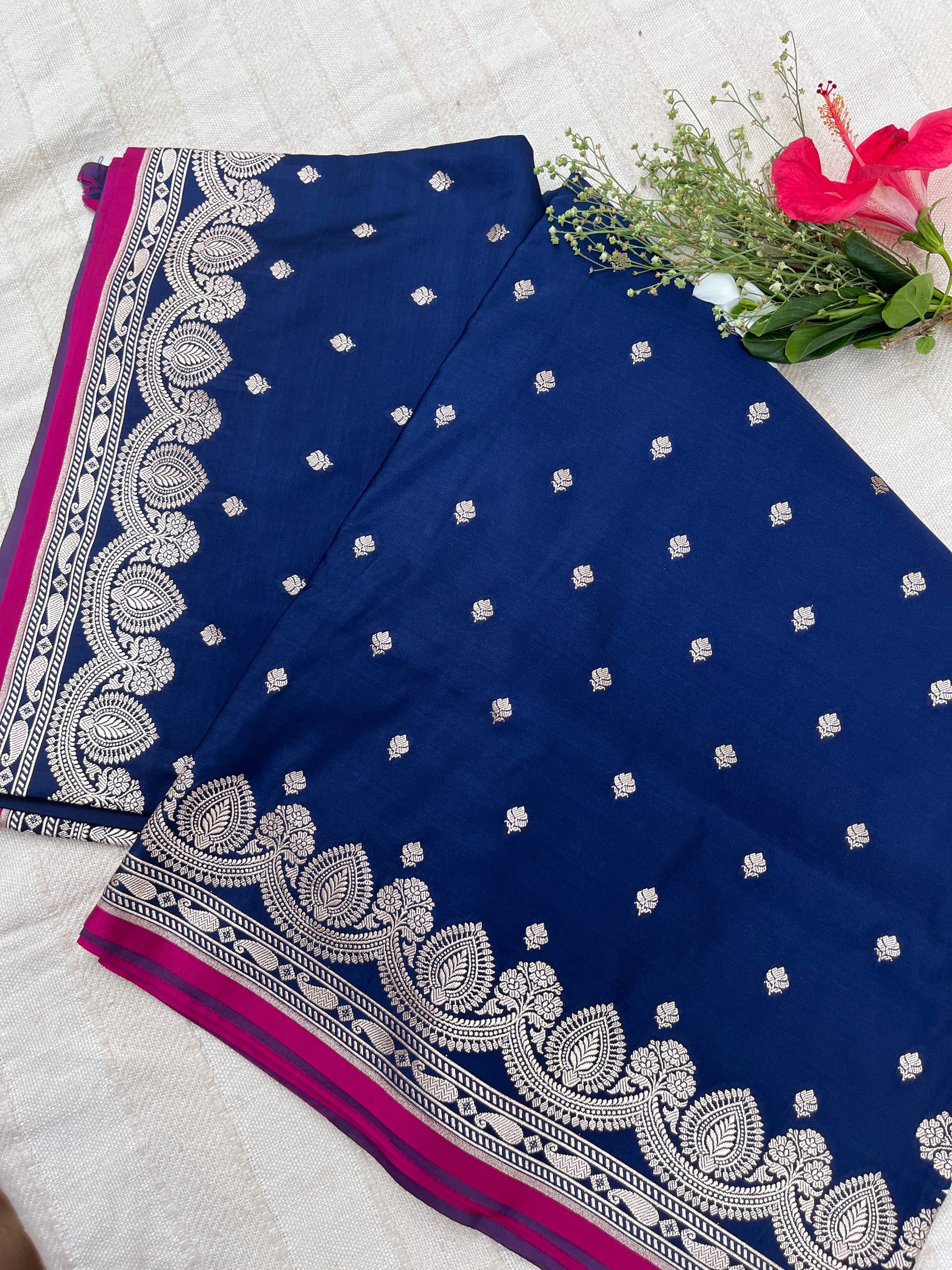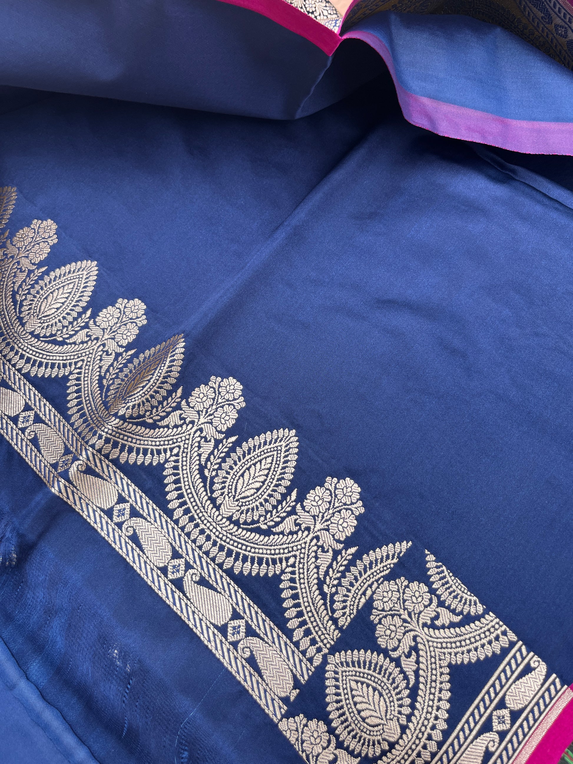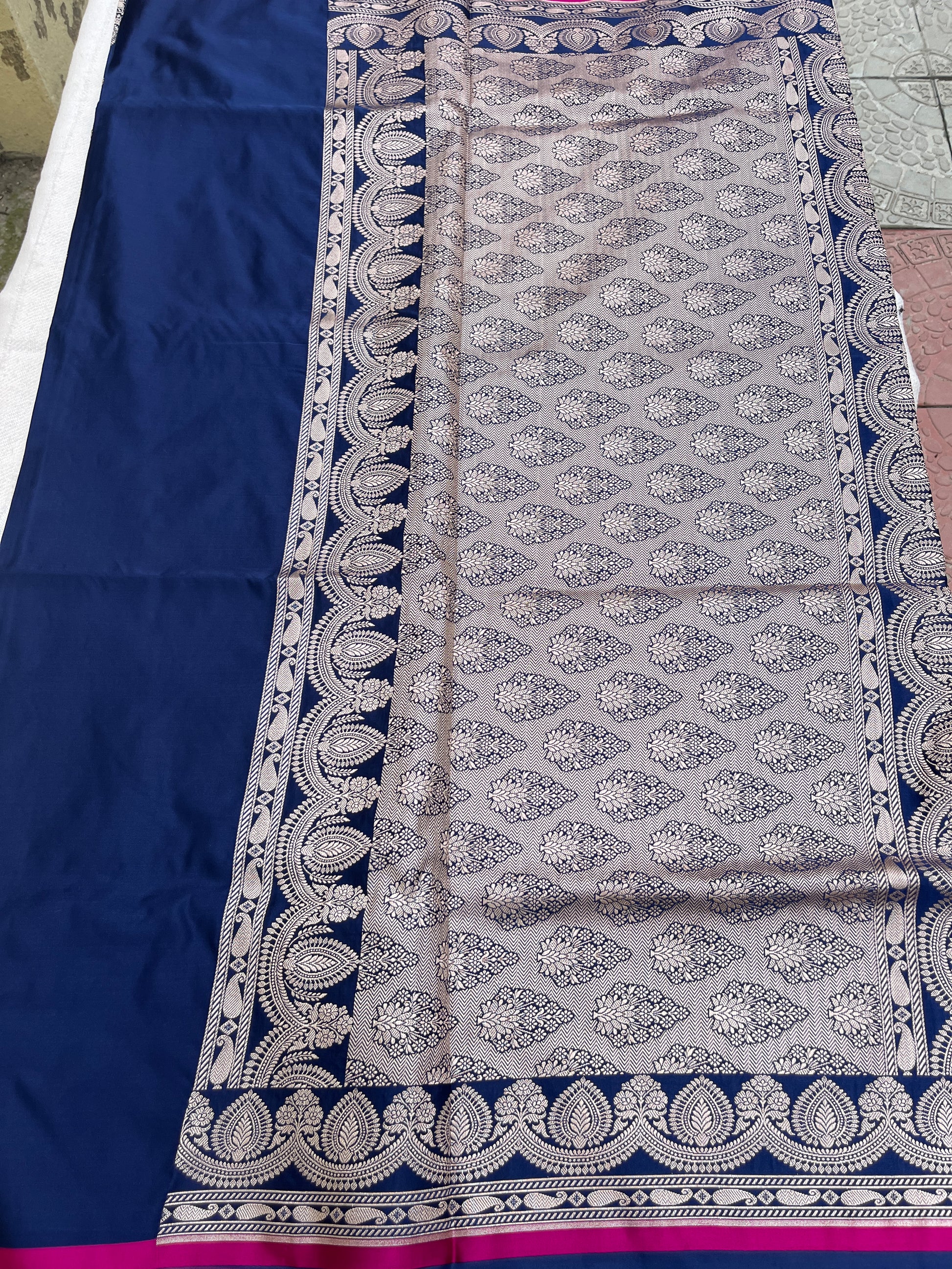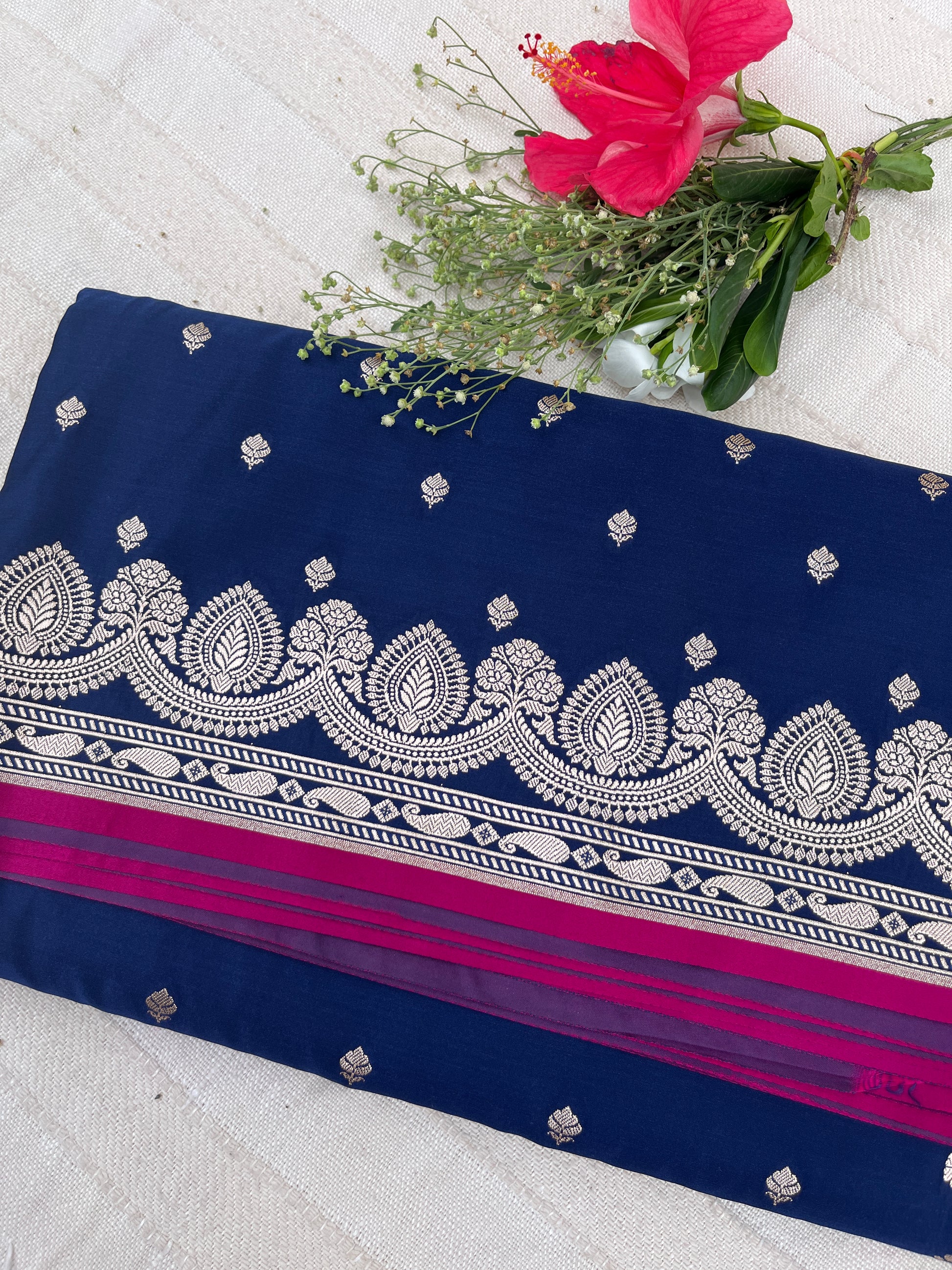 Banarasi Mashru Satin Silk Saree - Midnight Blue