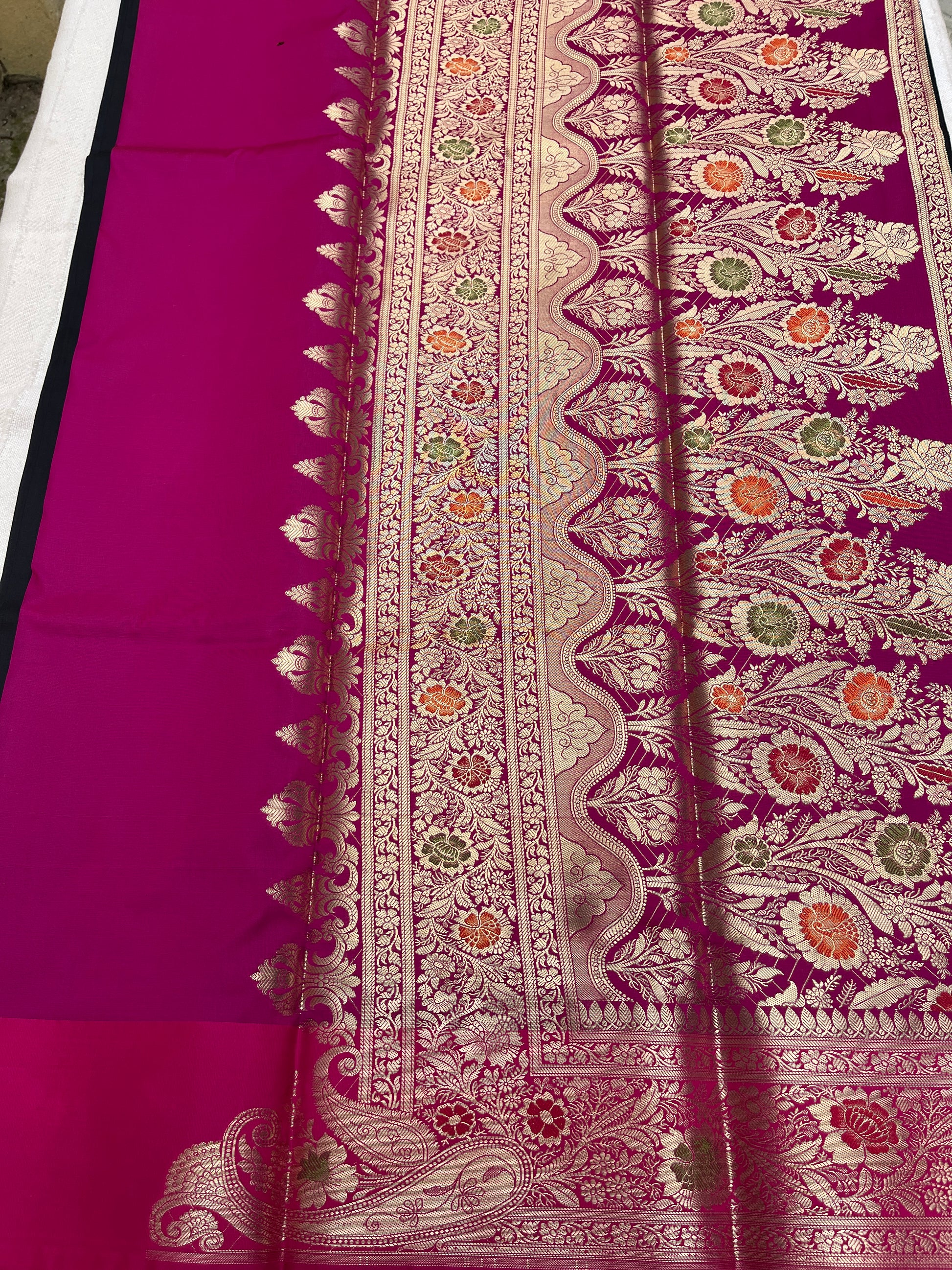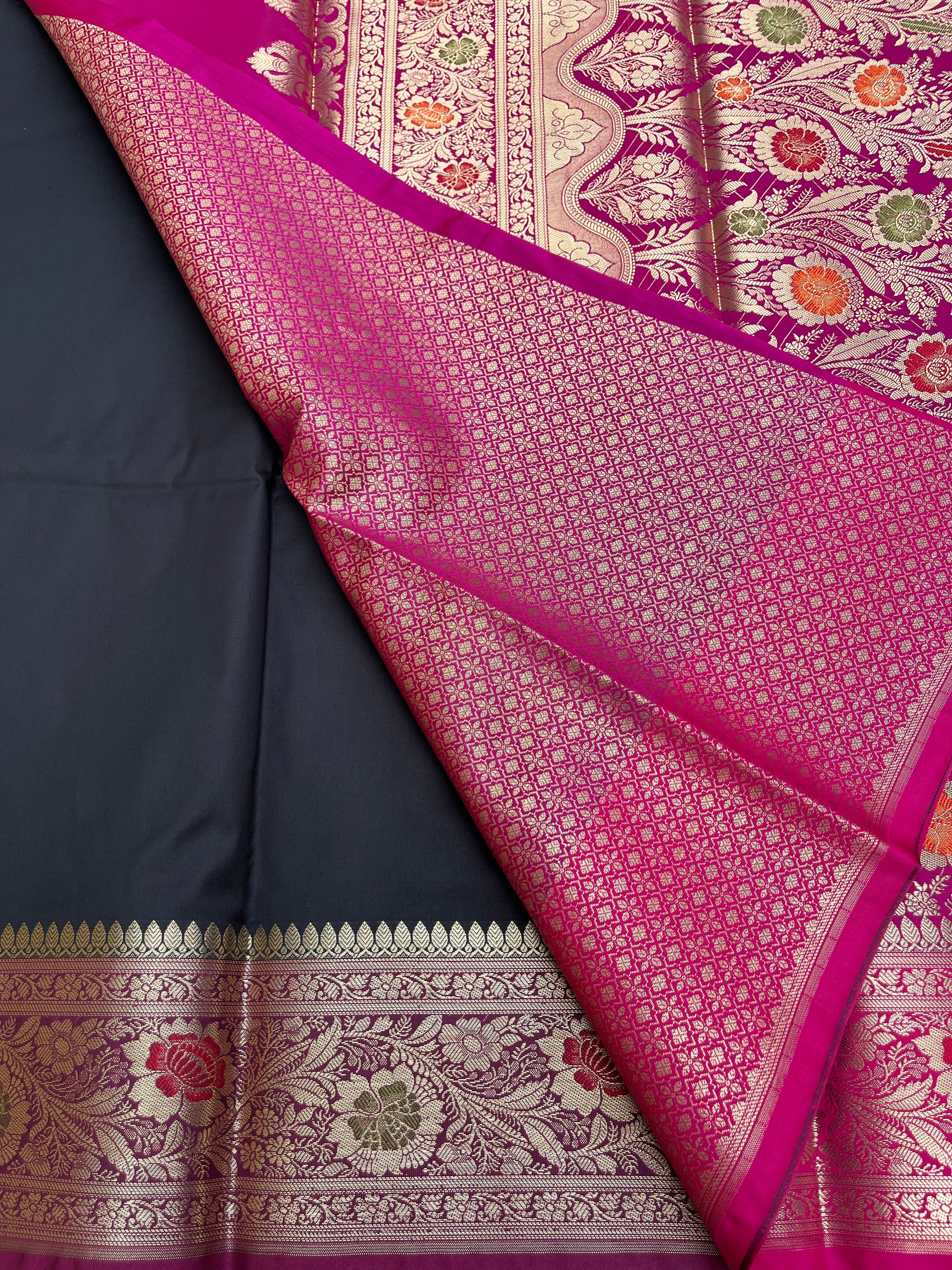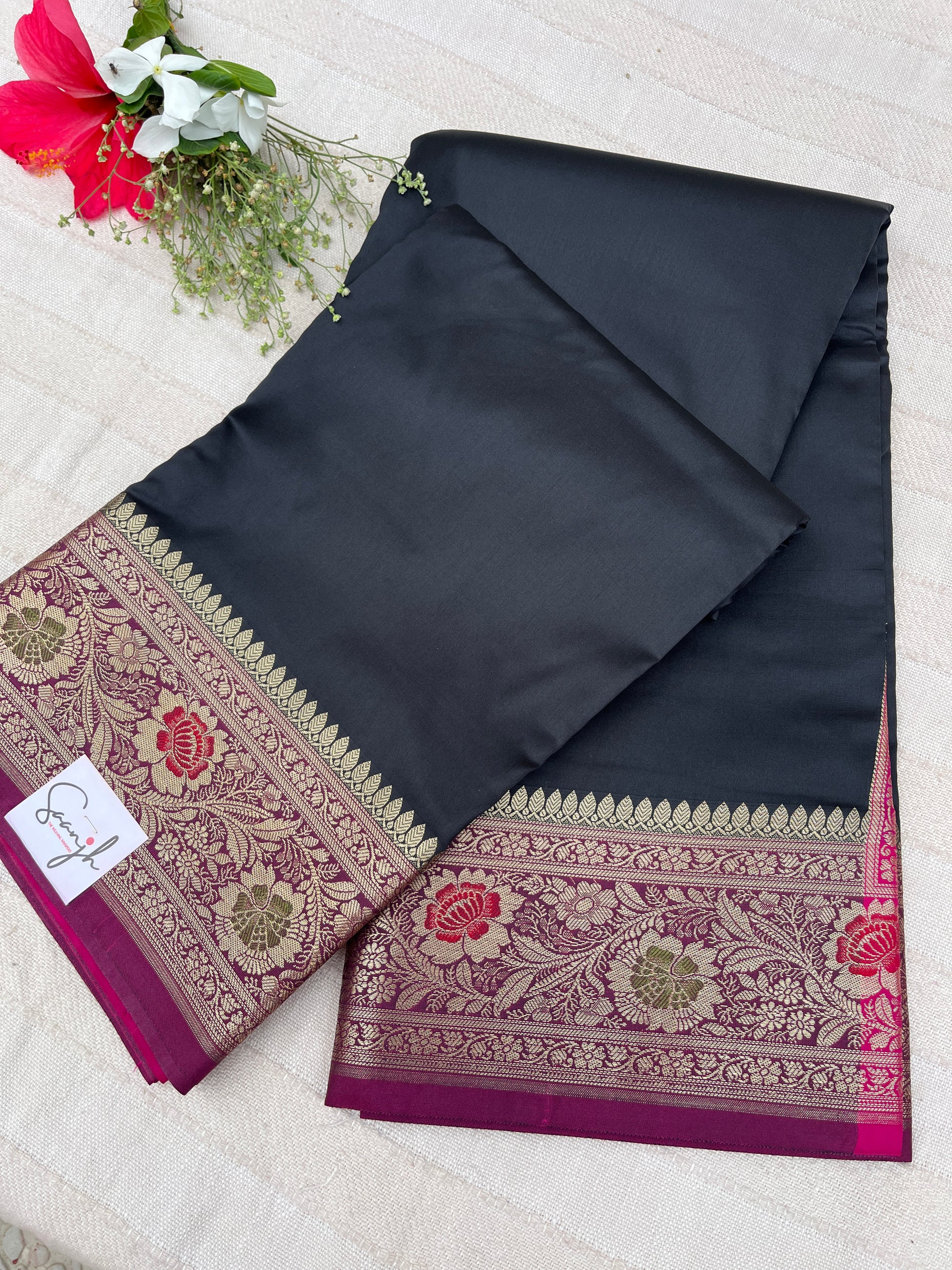 Banarasi Soft Silk Saree - Black-Pink