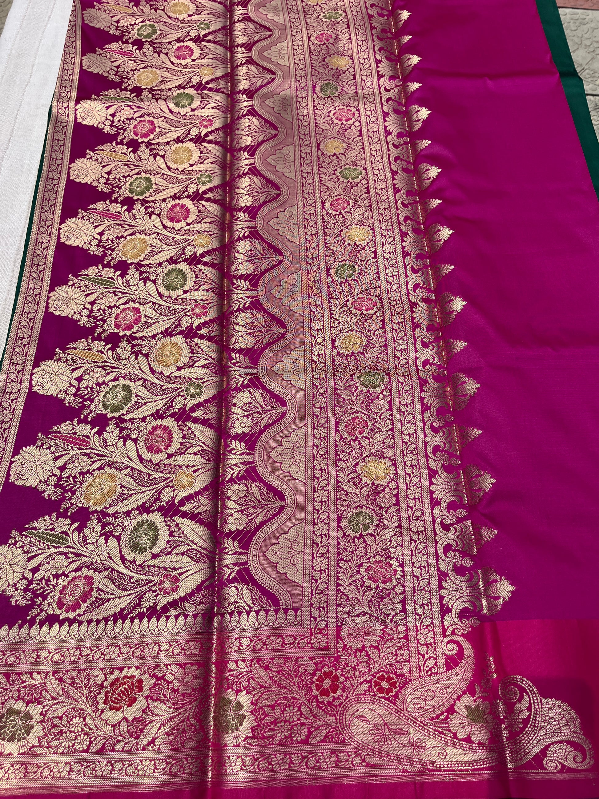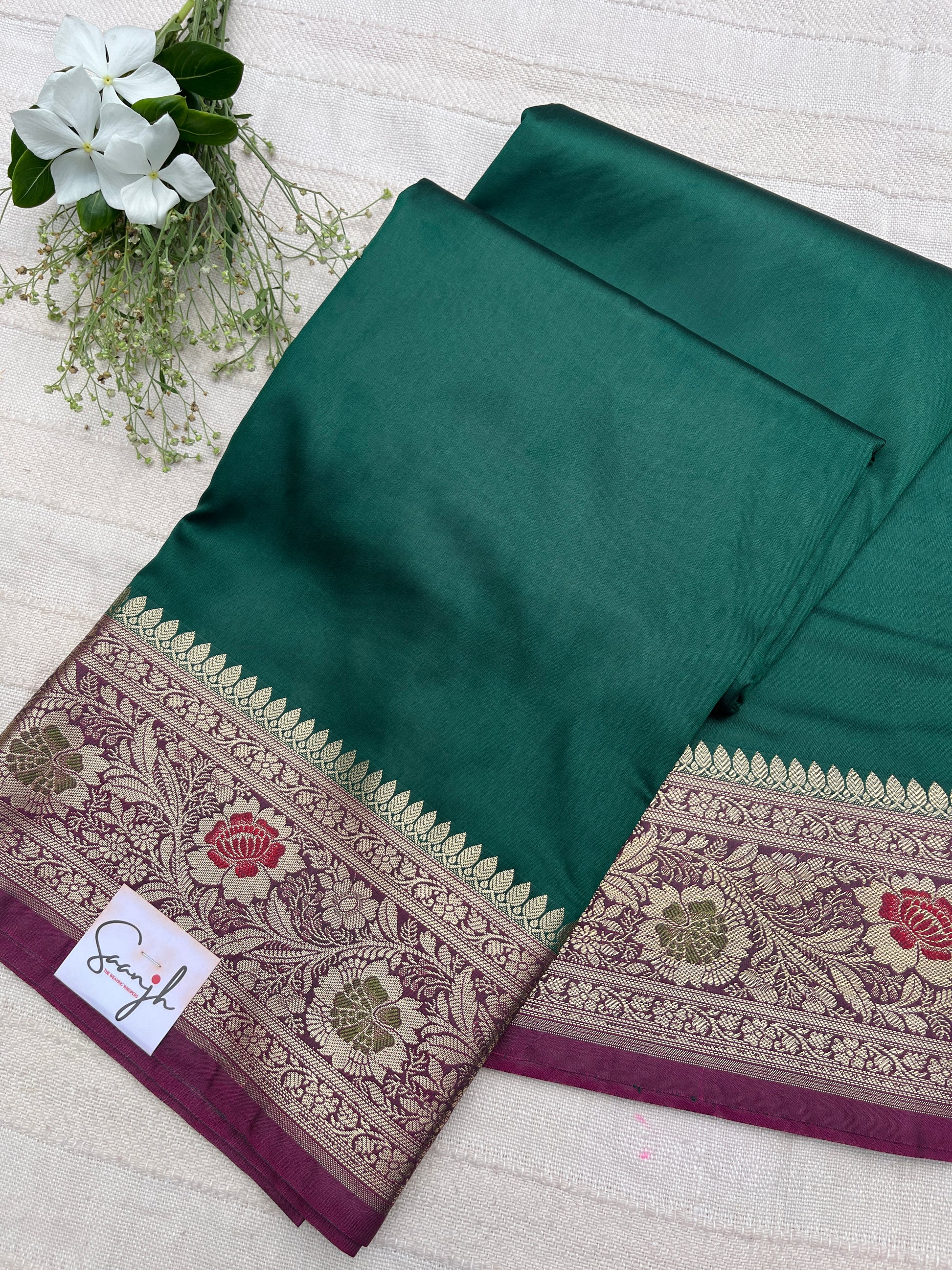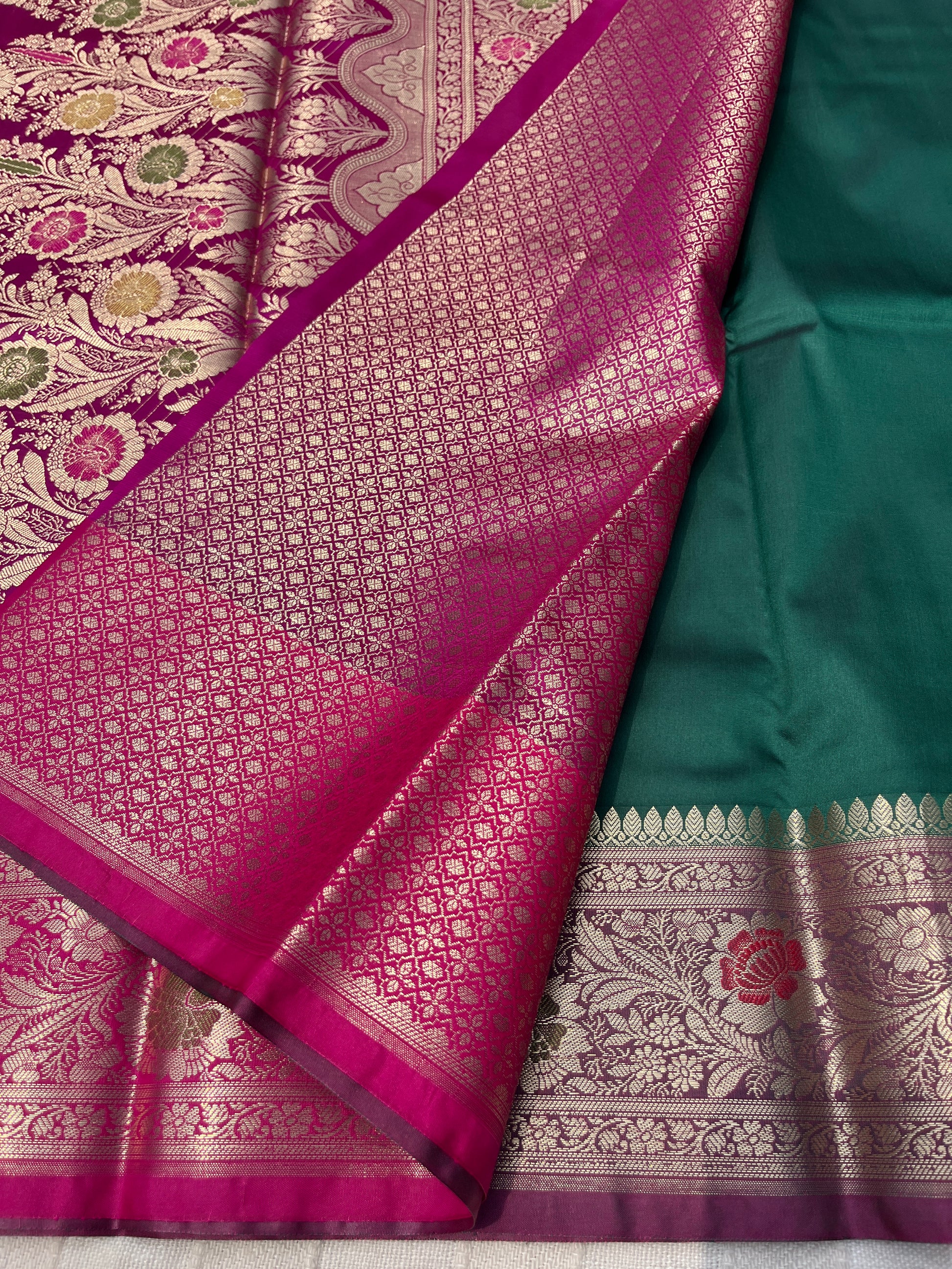 Banarasi Soft Silk Saree - Bottle Green-Pink