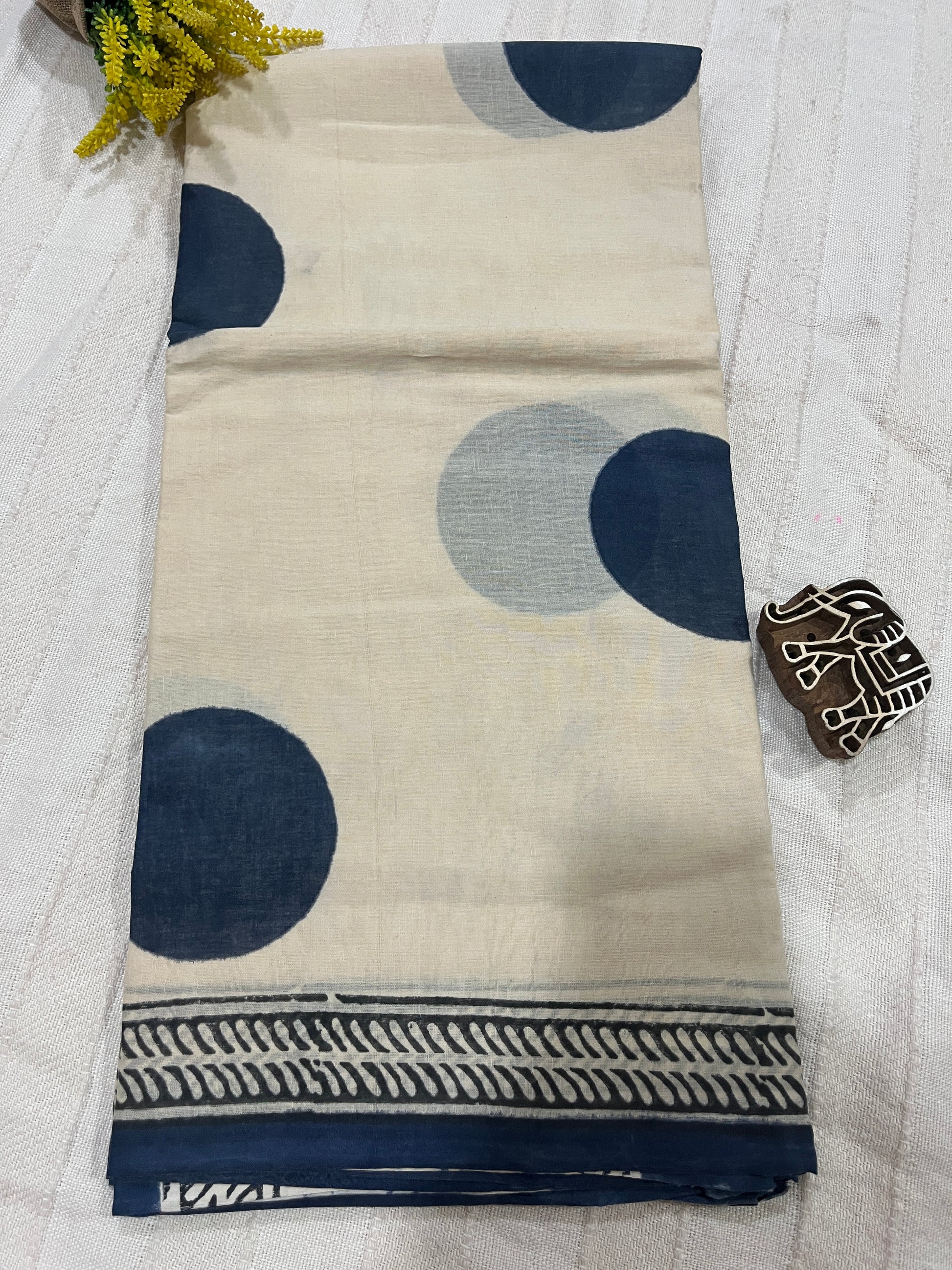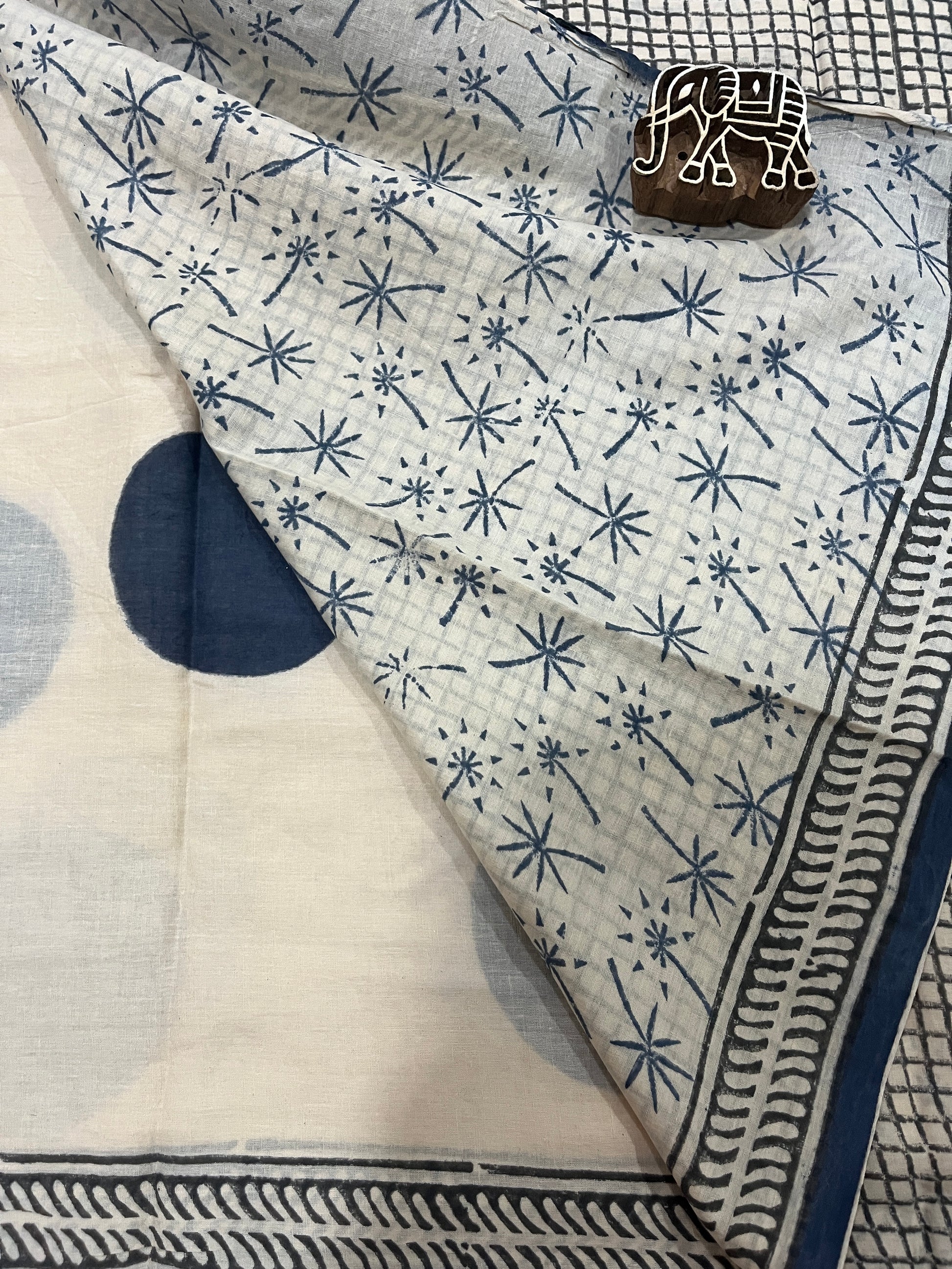 ‘Bindi Tales’ Handblock Mul Cotton Saree - Grey on Off-white