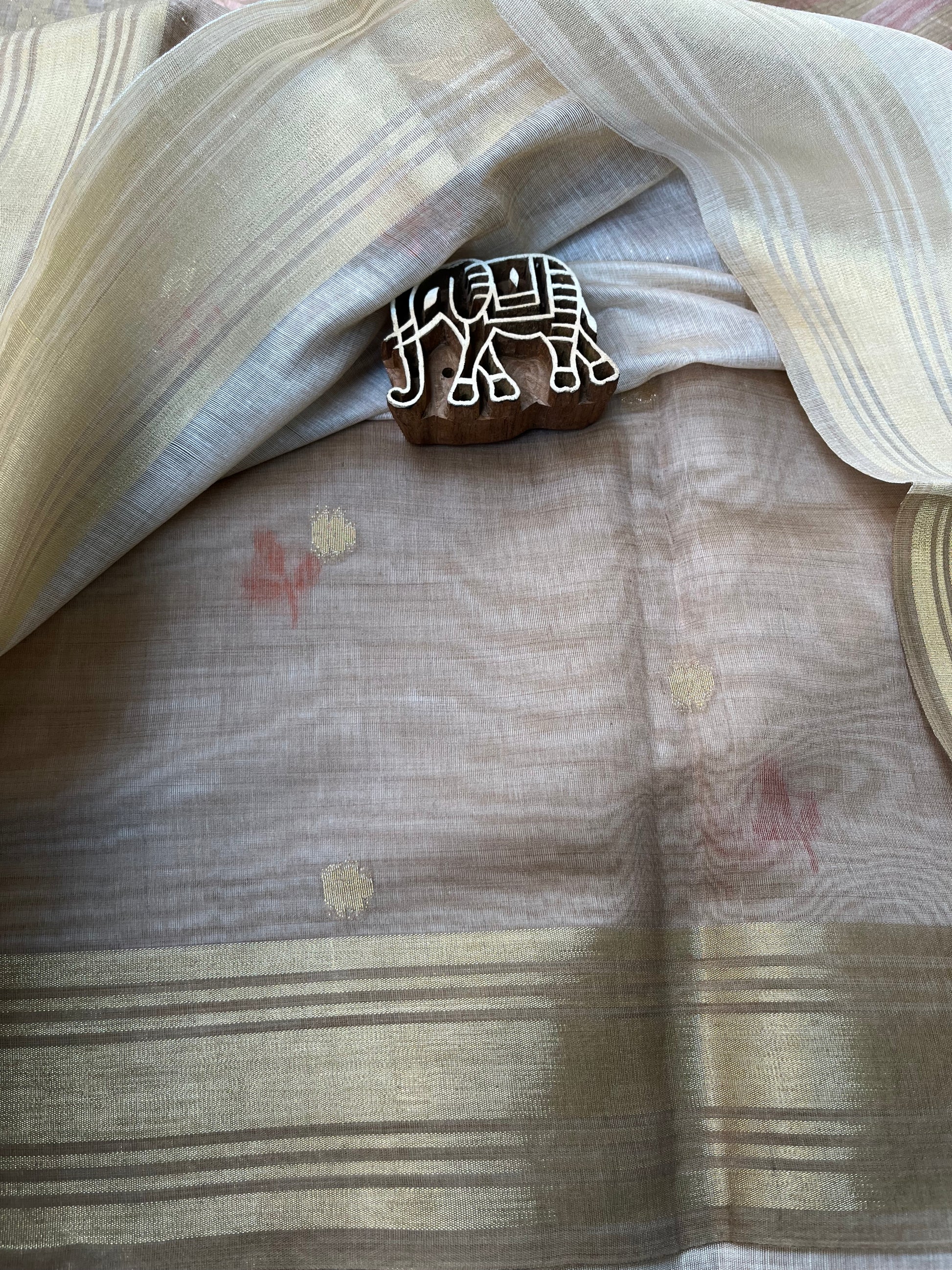 Experience the timeless elegance of our Jamdani Chanderi Cotton Silk Saree. This exquisite piece combines the soft, luxurious feel of silk with the lightness and comfort of cotton, creating a perfect blend for any occasion.