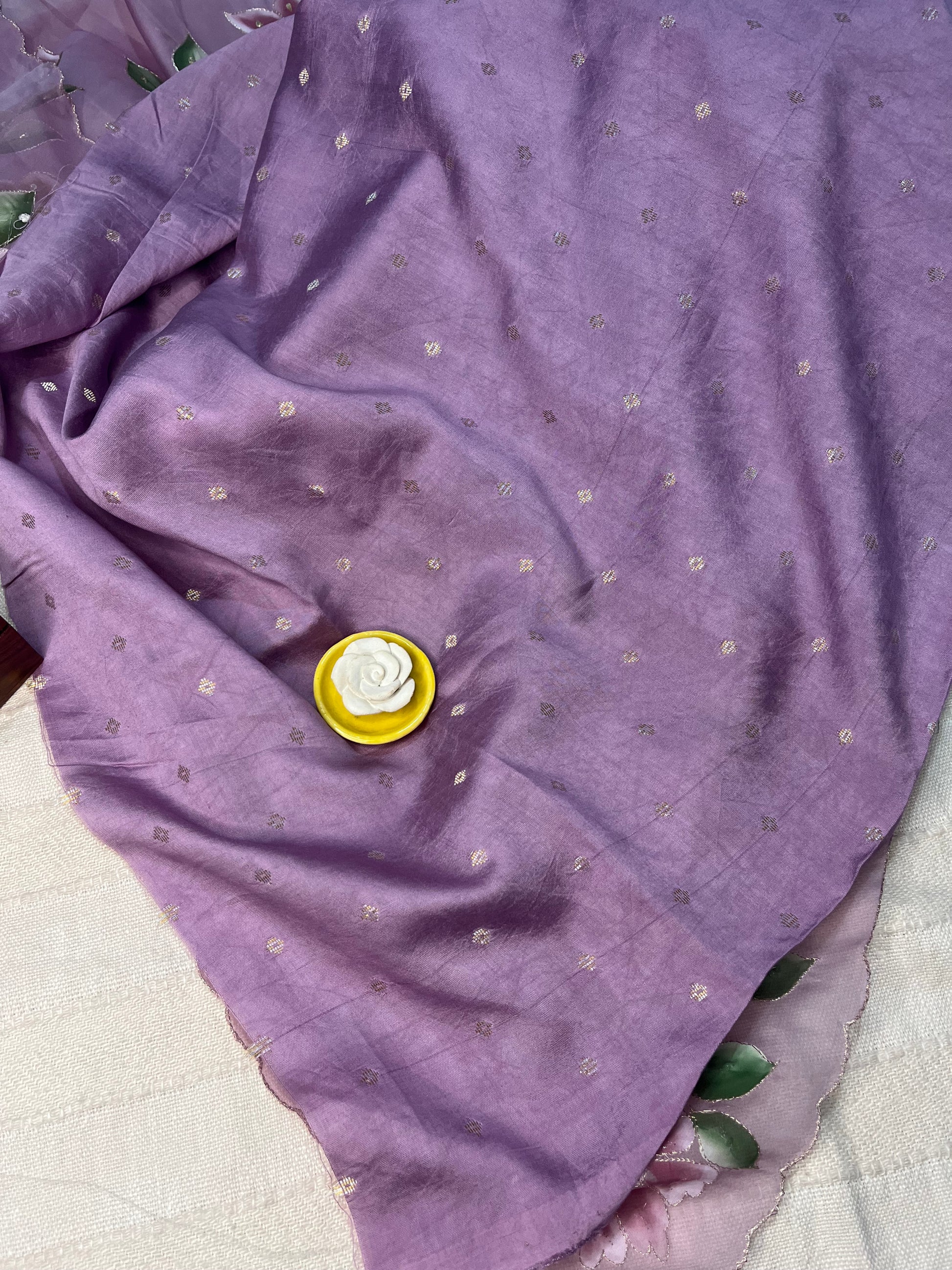Crepe Organza Handpainted Saree with Embroidery- Lavender