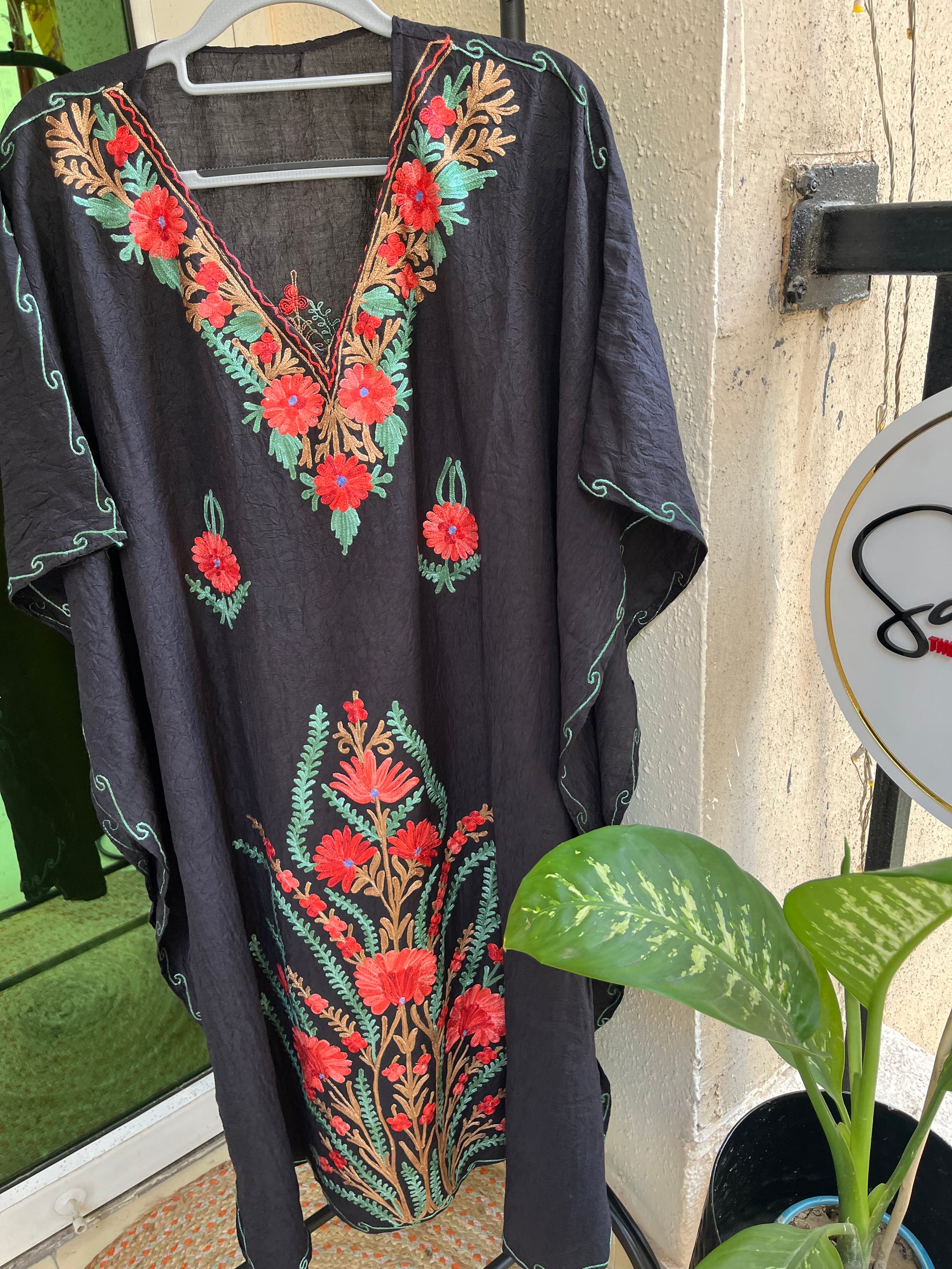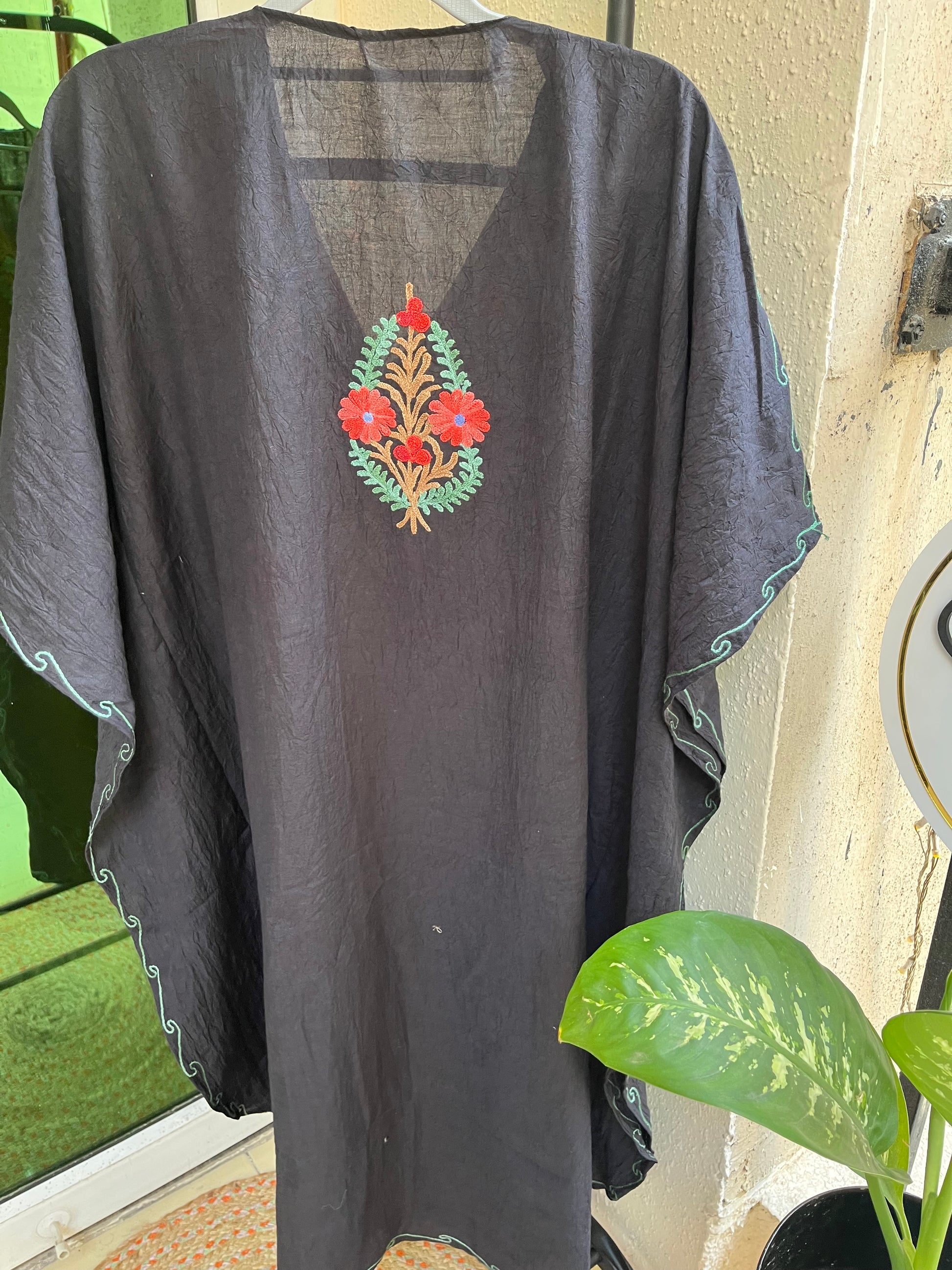 Effortlessly elegant and incredibly comfortable, our Crush Cotton Kashmiri Aariwork Kaftans are a beautiful blend of tradition and ease.