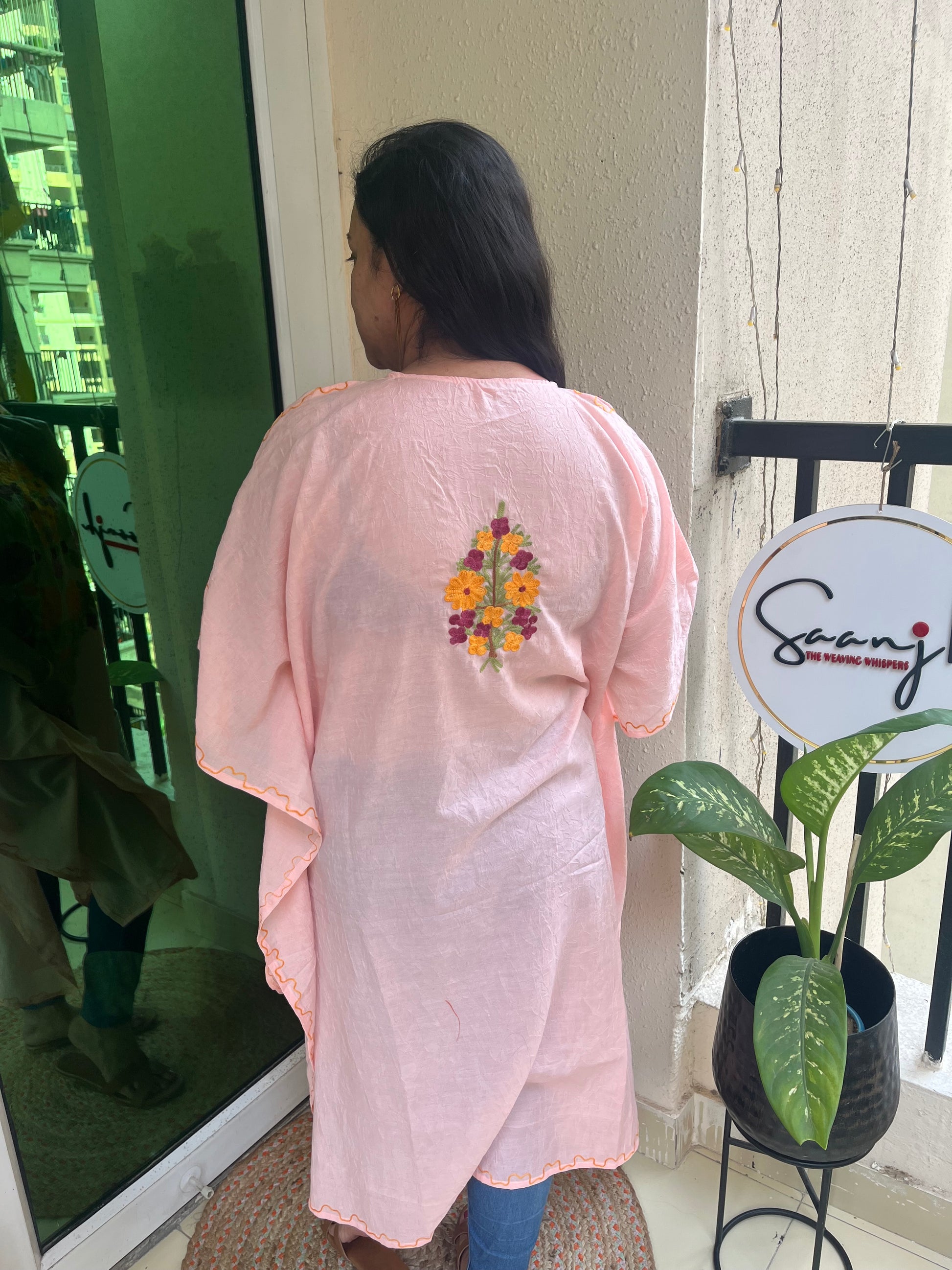 Crush Cotton Aariwork Kaftan - Baby Pink