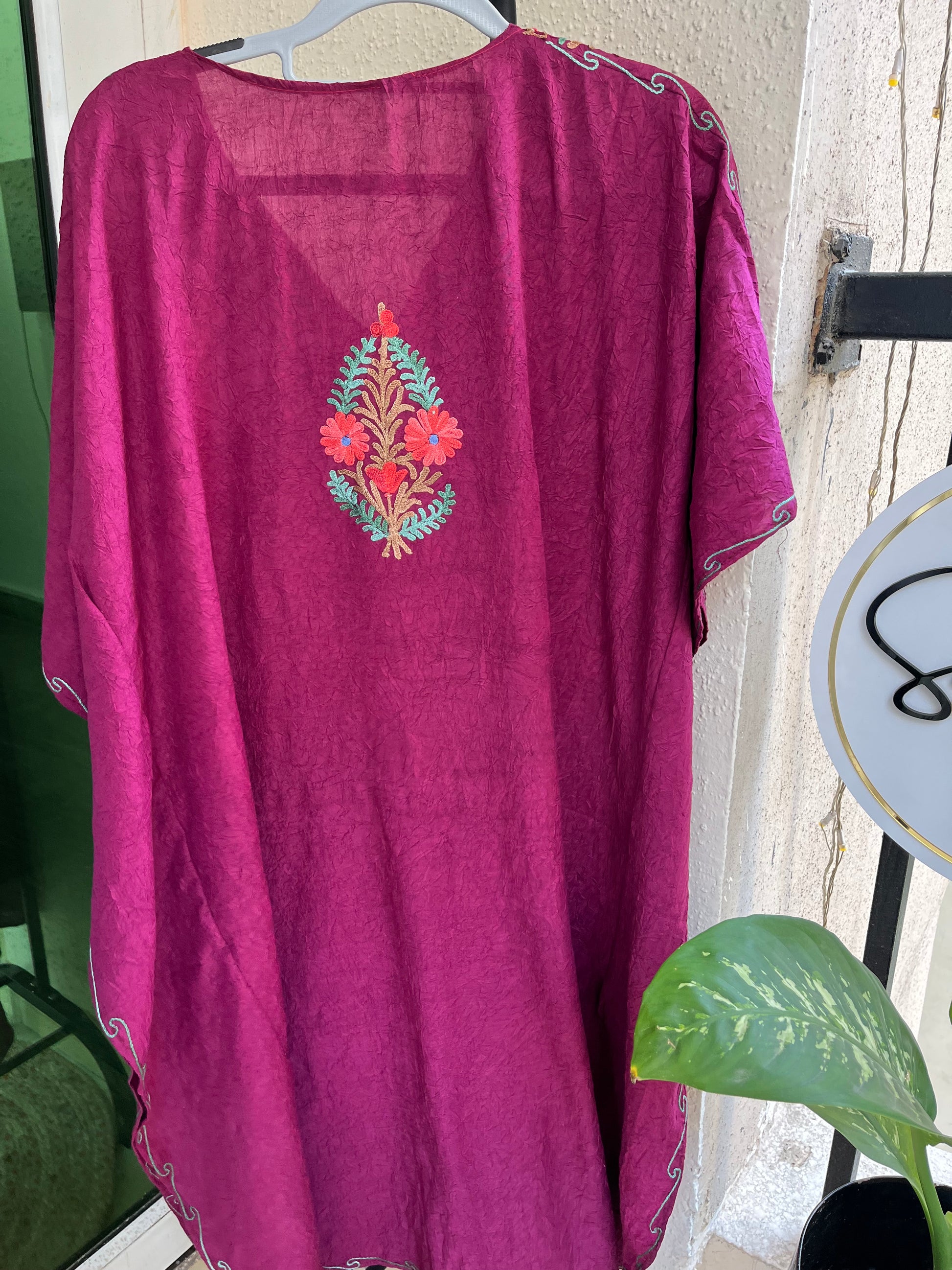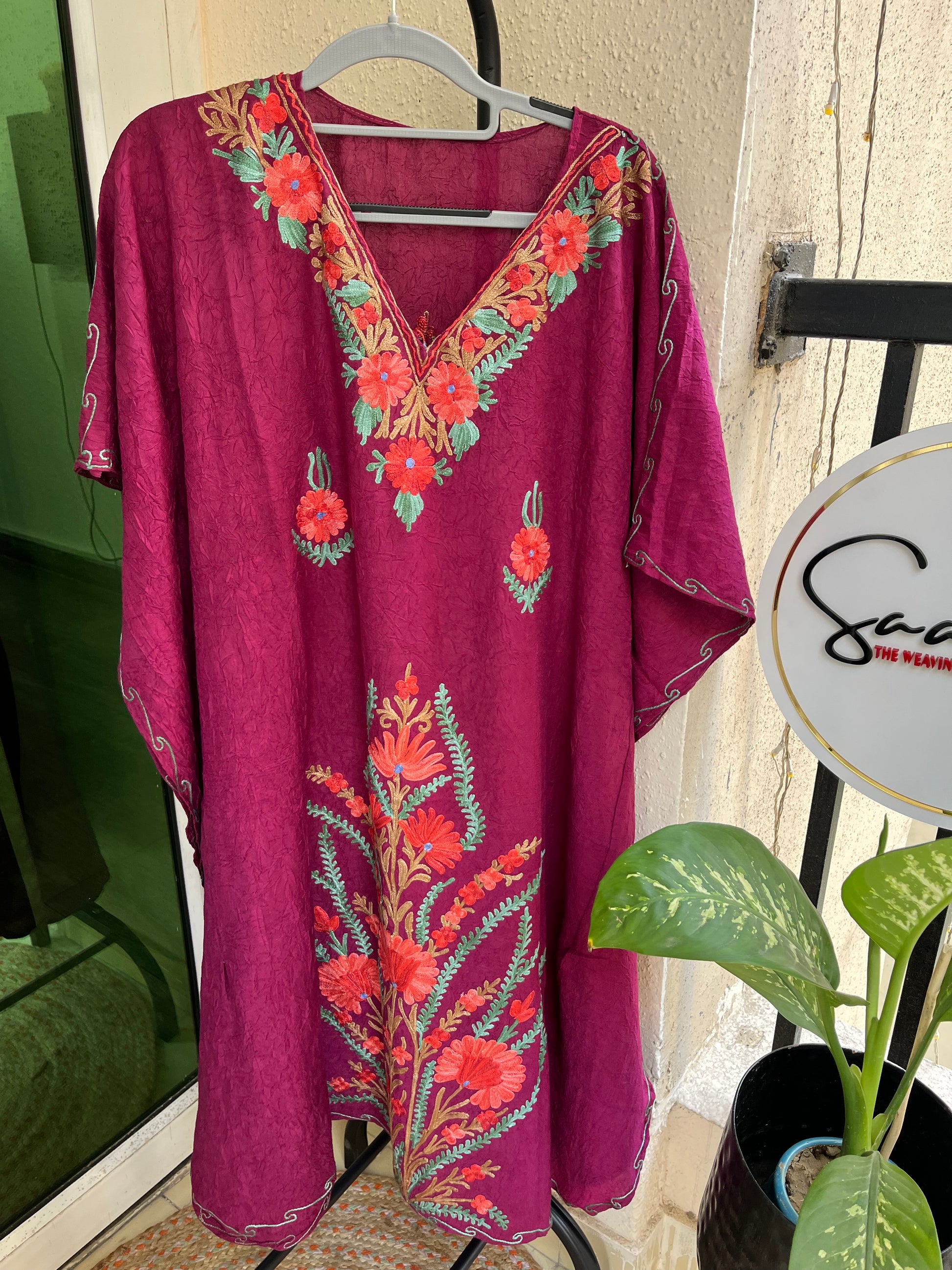 Crush Cotton Aariwork Kaftan - Wine