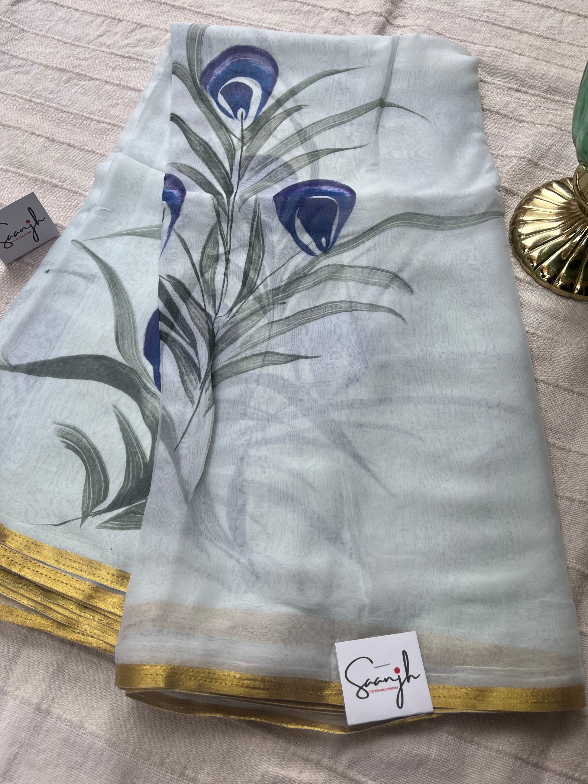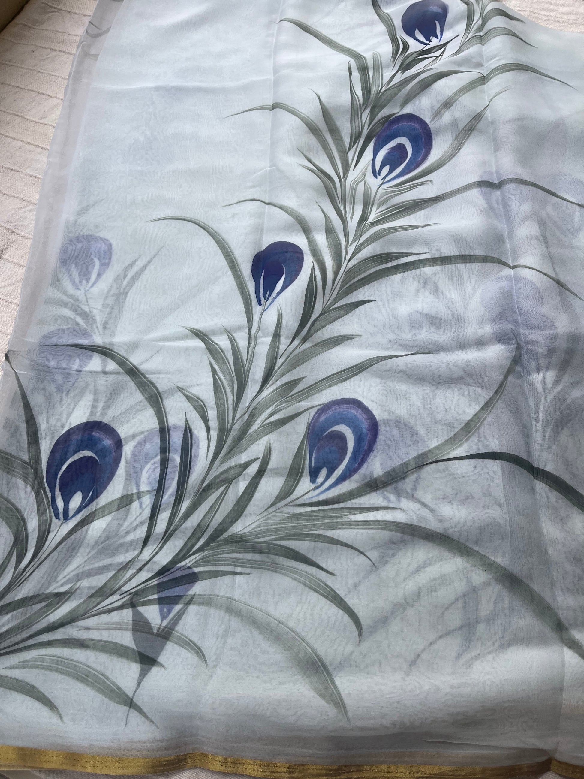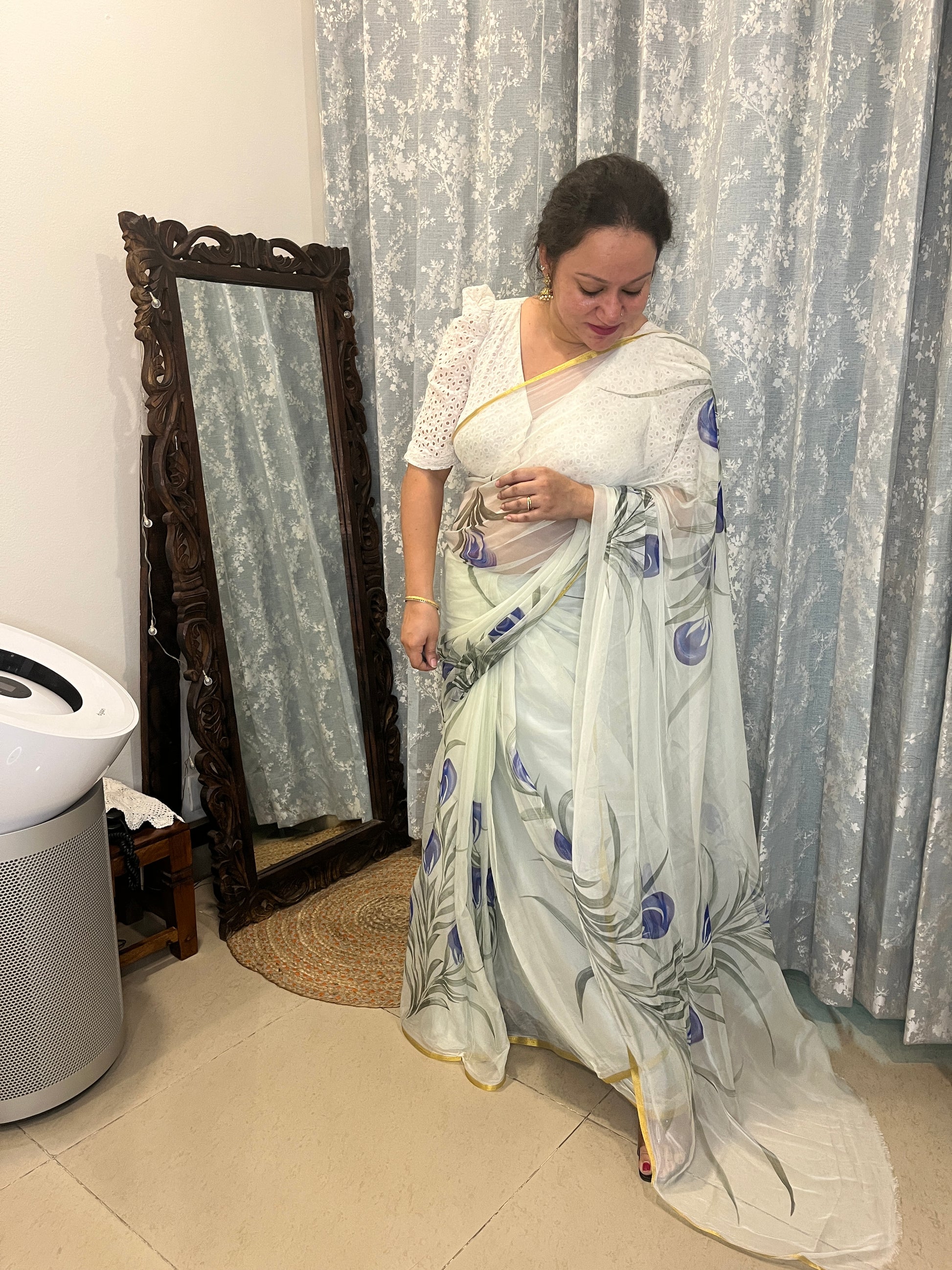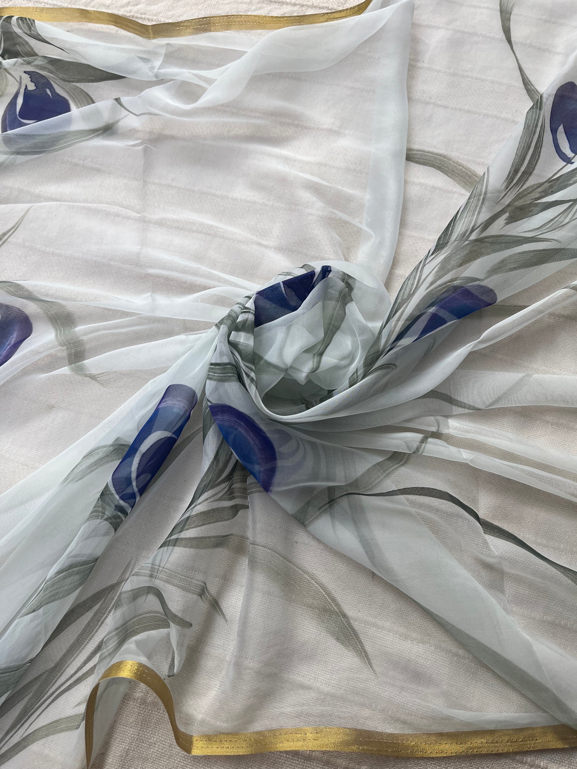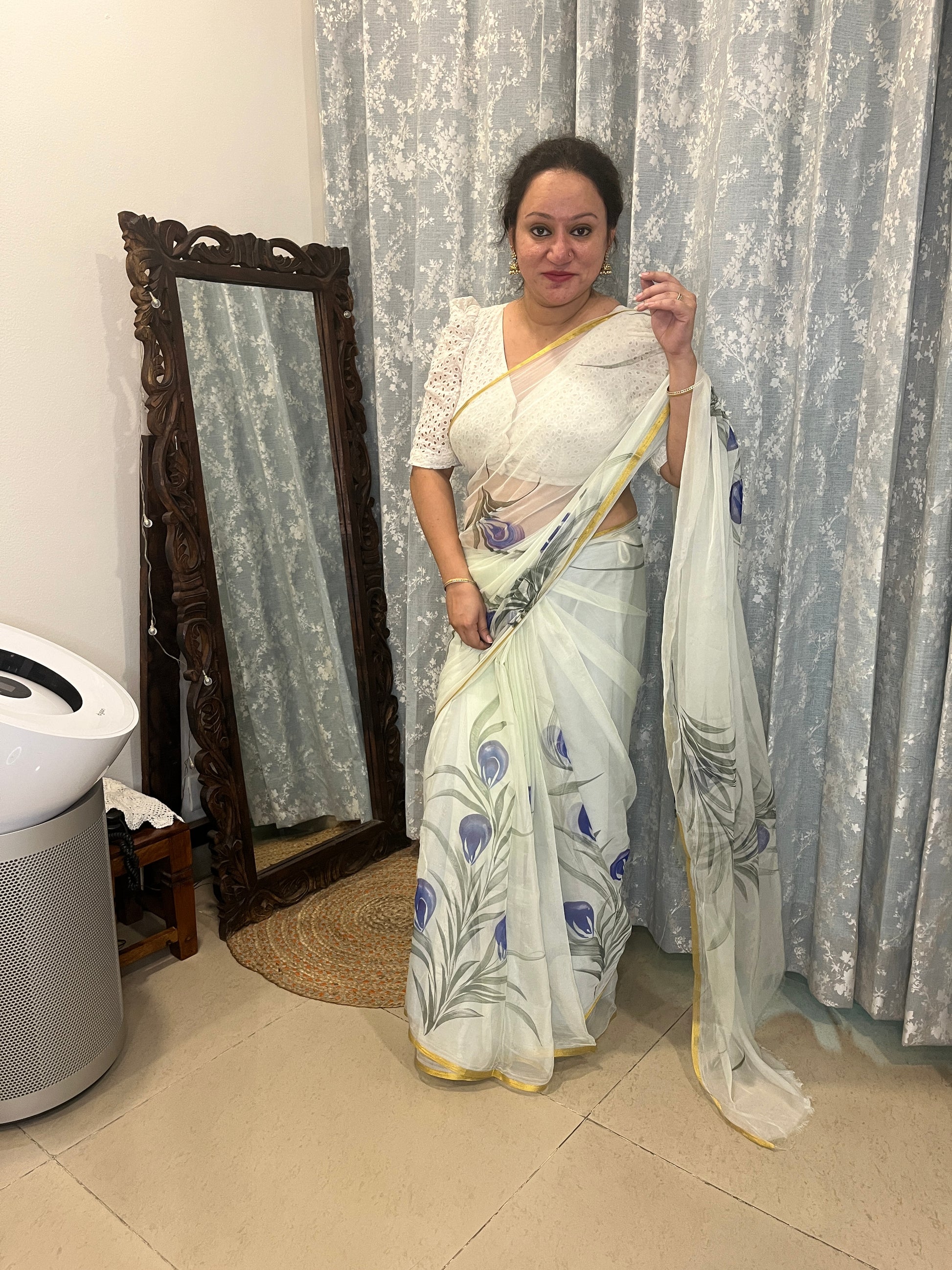 Drape yourself in elegance with our exquisite Hand-Painted Chiffon Saree, a true masterpiece of craftsmanship and artistry. Each saree is meticulously hand-painted by skilled artisans, ensuring that every piece is unique and tells its own story.
