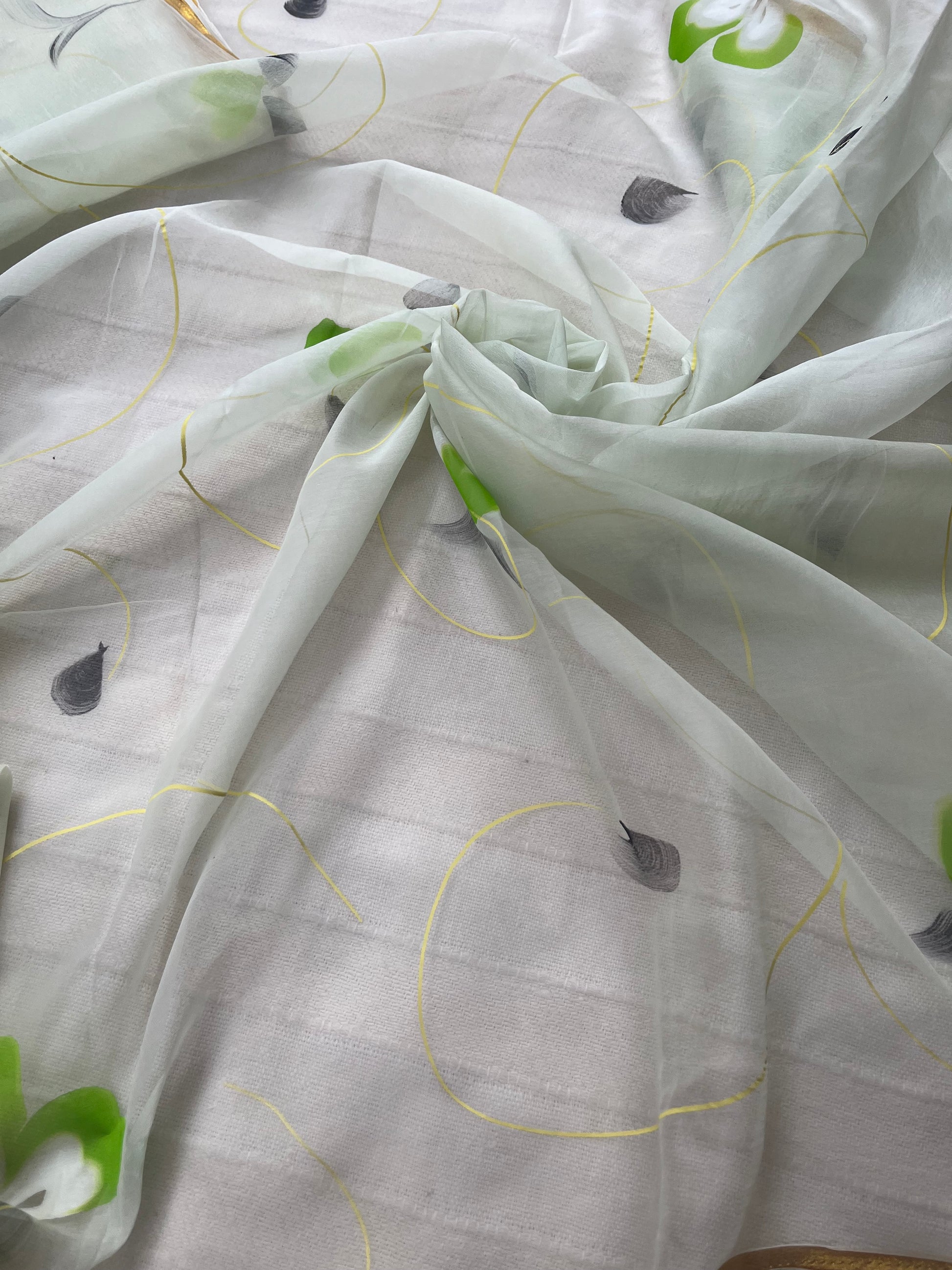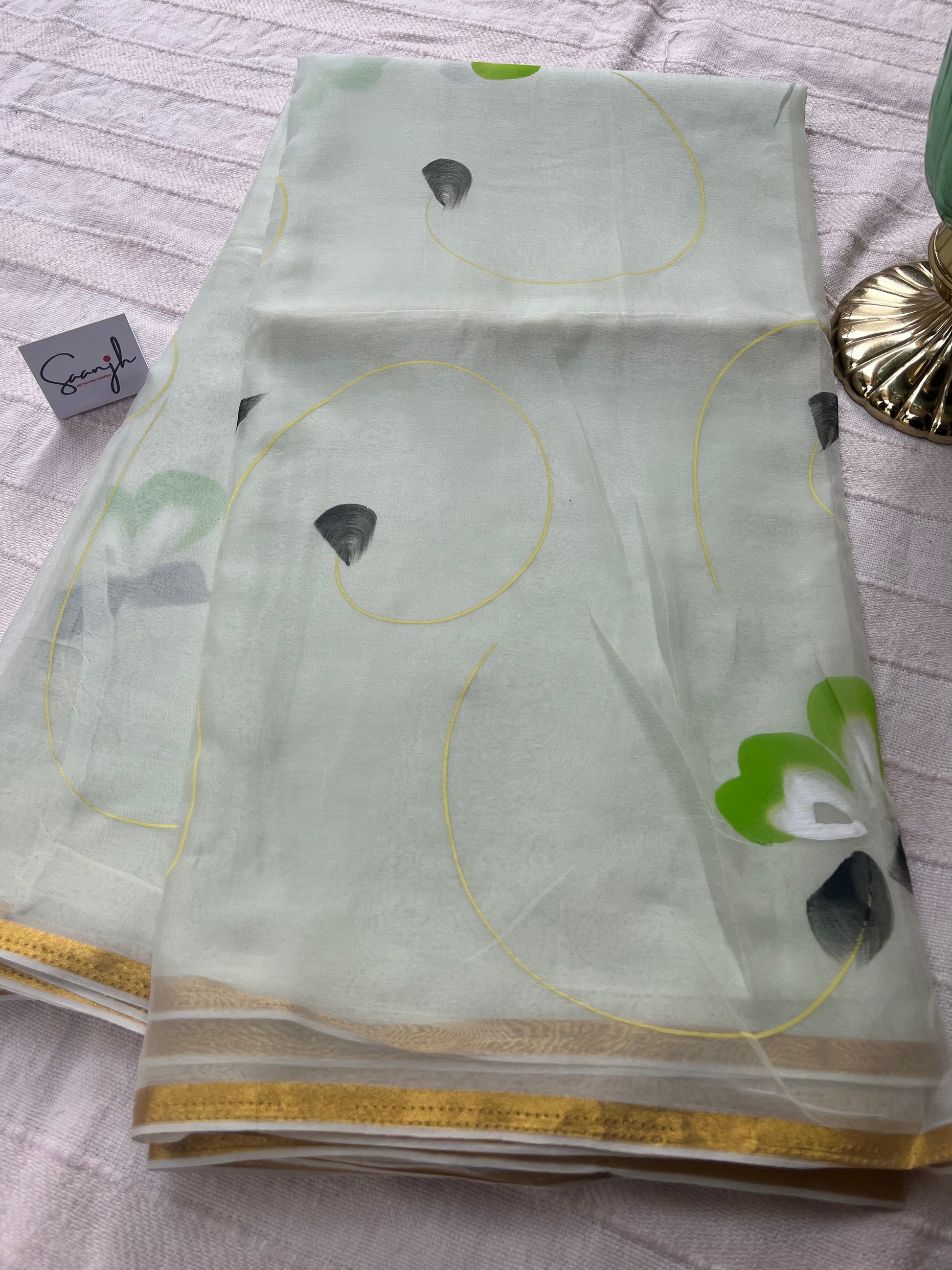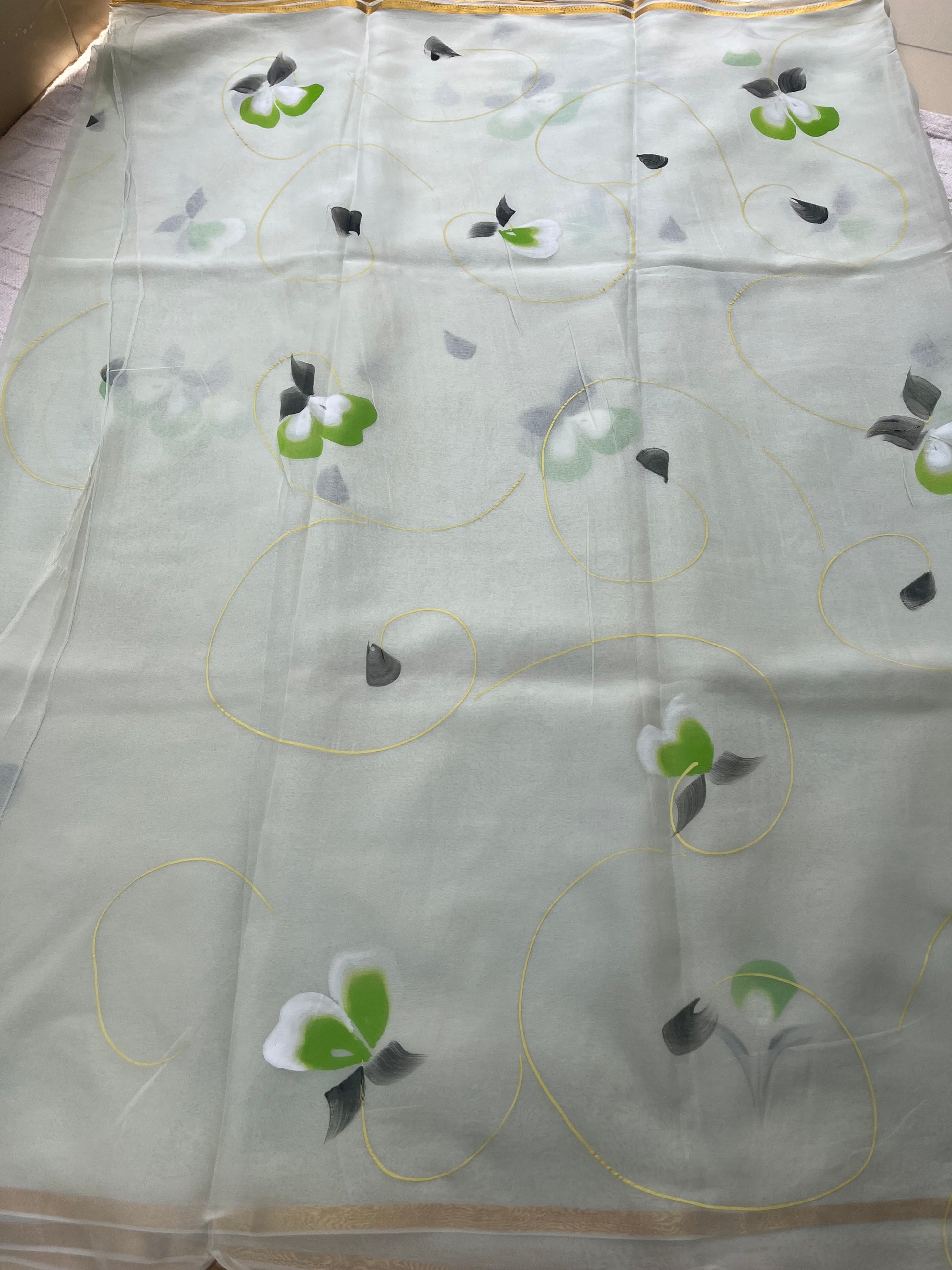 Drape yourself in elegance with our exquisite Hand-Painted Chiffon Saree, a true masterpiece of craftsmanship and artistry. Each saree is meticulously hand-painted by skilled artisans, ensuring that every piece is unique and tells its own story.