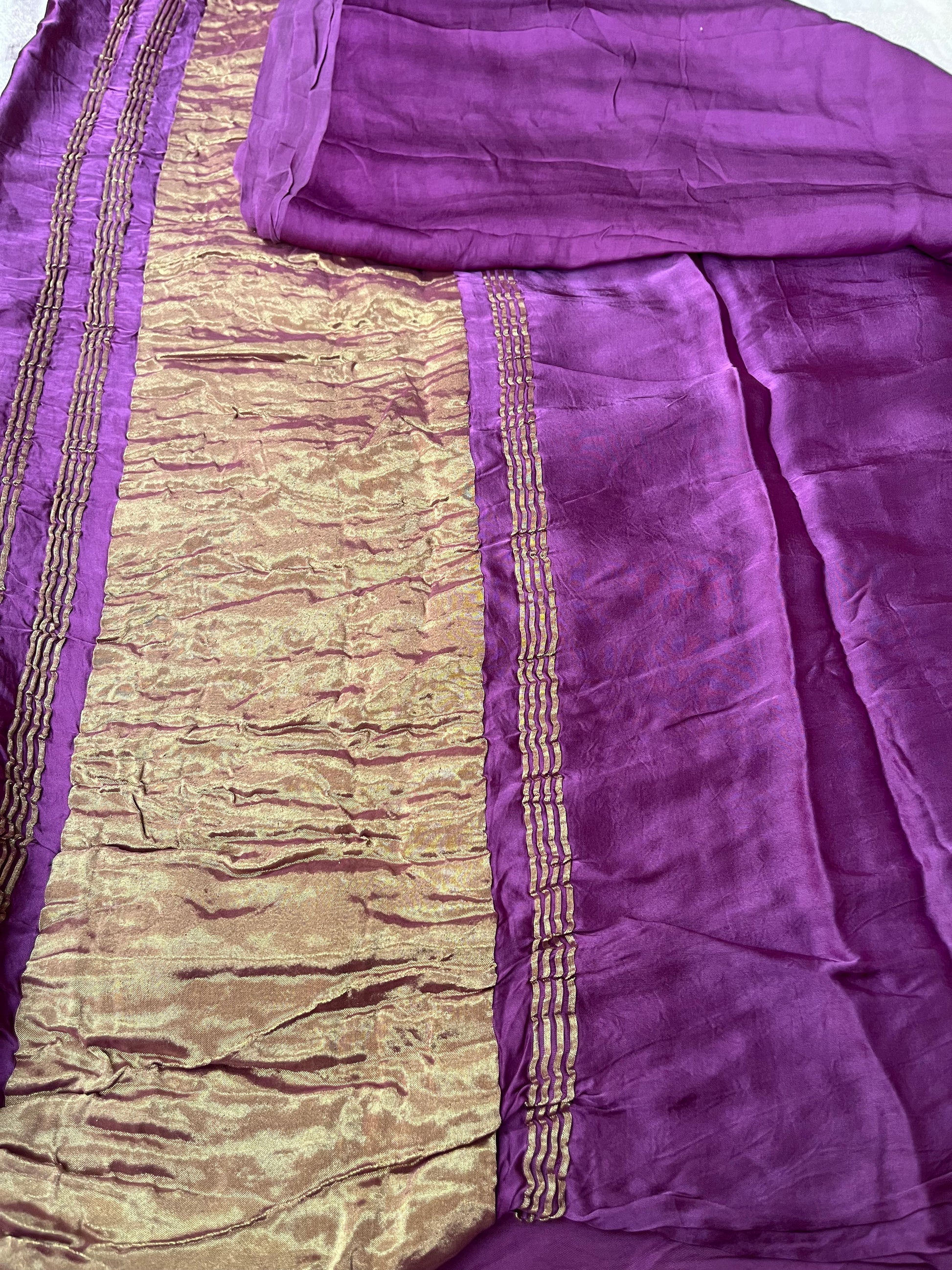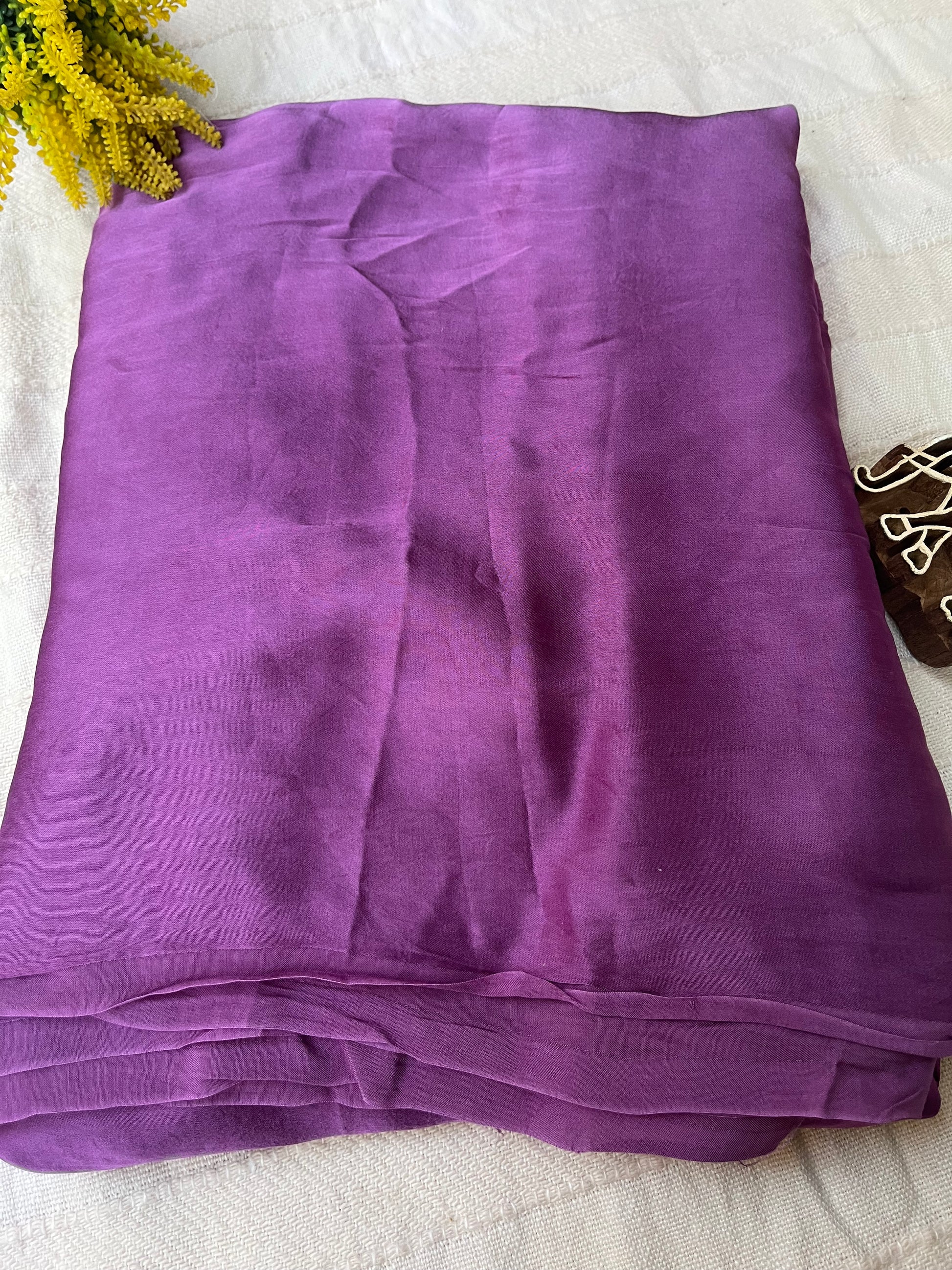Mauve Plain Modal Silk Saree with Tissue Palla