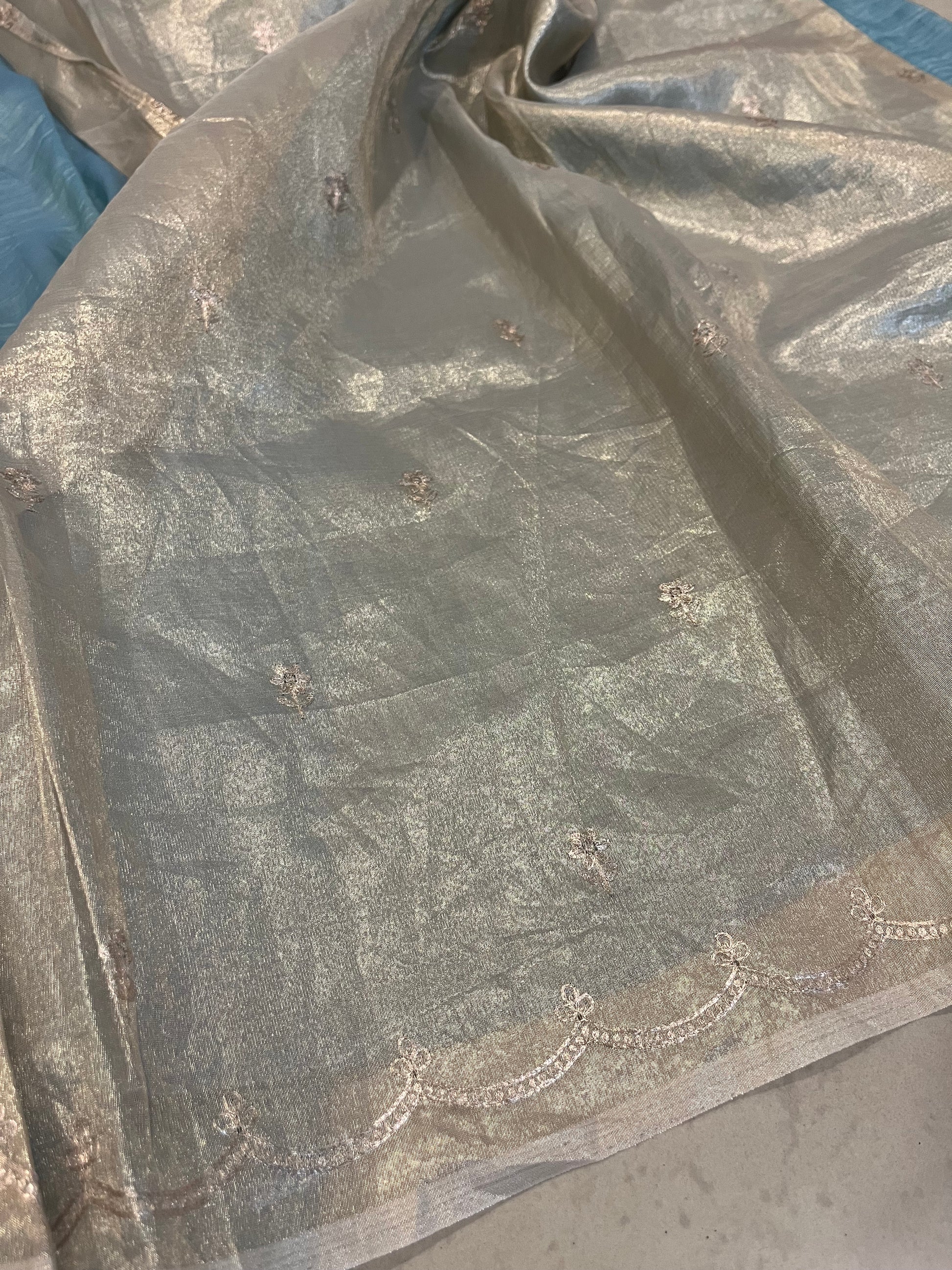 - Blouse: 1m gold tissue blouse piece with pitta work