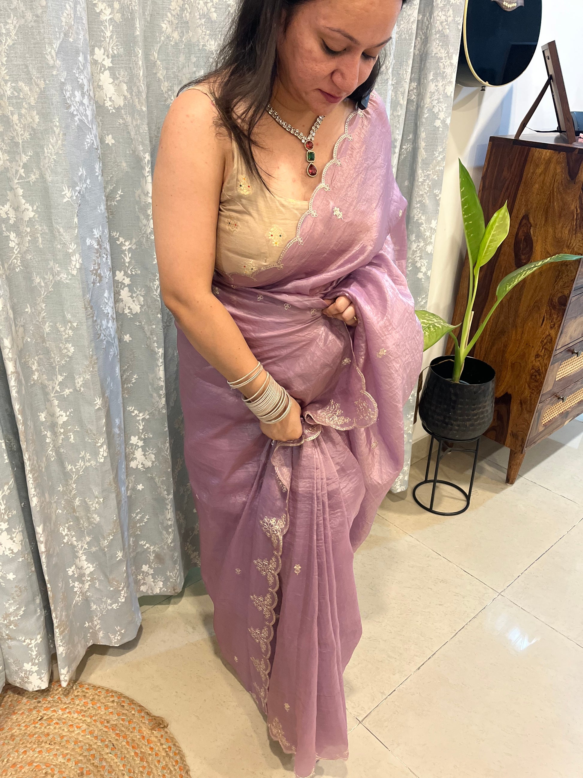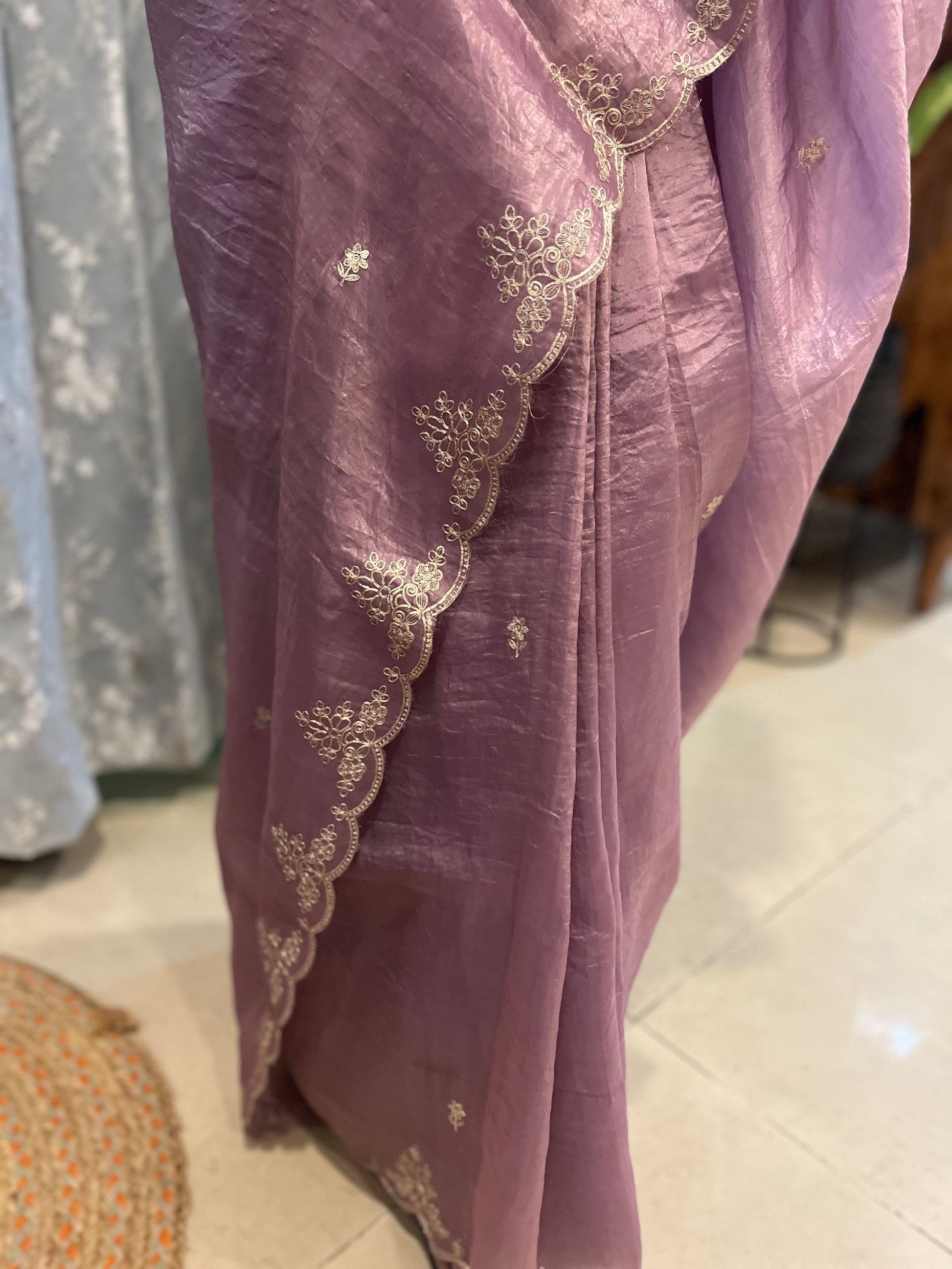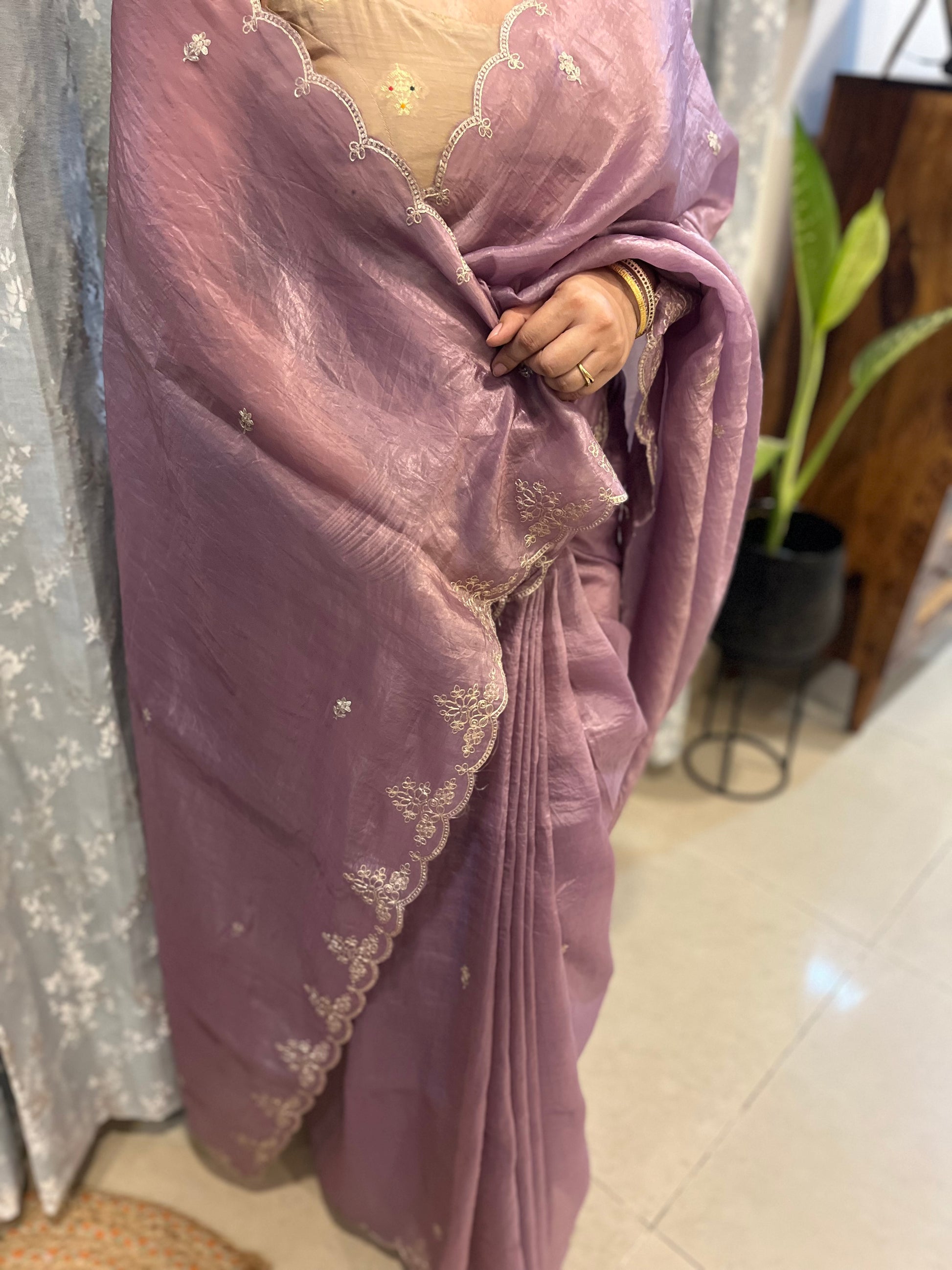 Drape yourself in timeless elegance with our Pitta Work Crepe Tissue Saree – a harmonious blend of tradition and modernity. Crafted on a luxurious crepe tissue base, this saree features the intricate brilliance of Pitta work — delicate hand embroidery done using metallic threads, evoking a regal shimmer and rich texture.