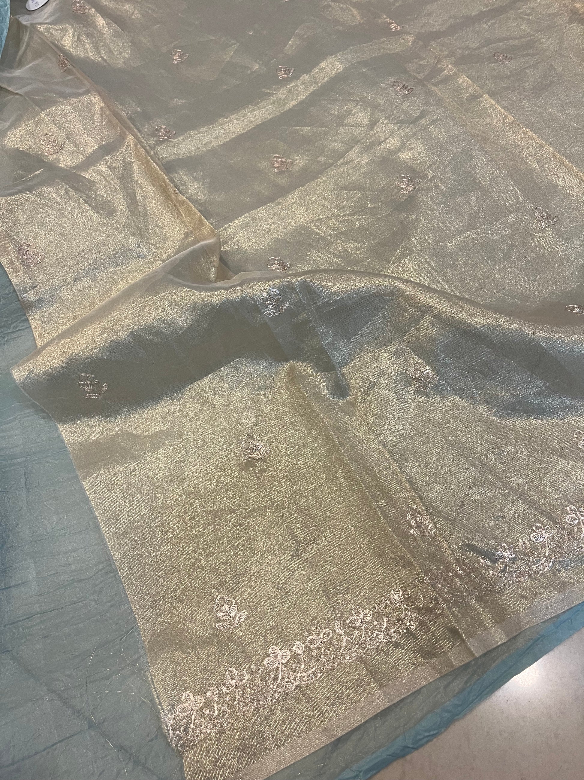 - Blouse: 1m gold tissue blouse piece with pitta work