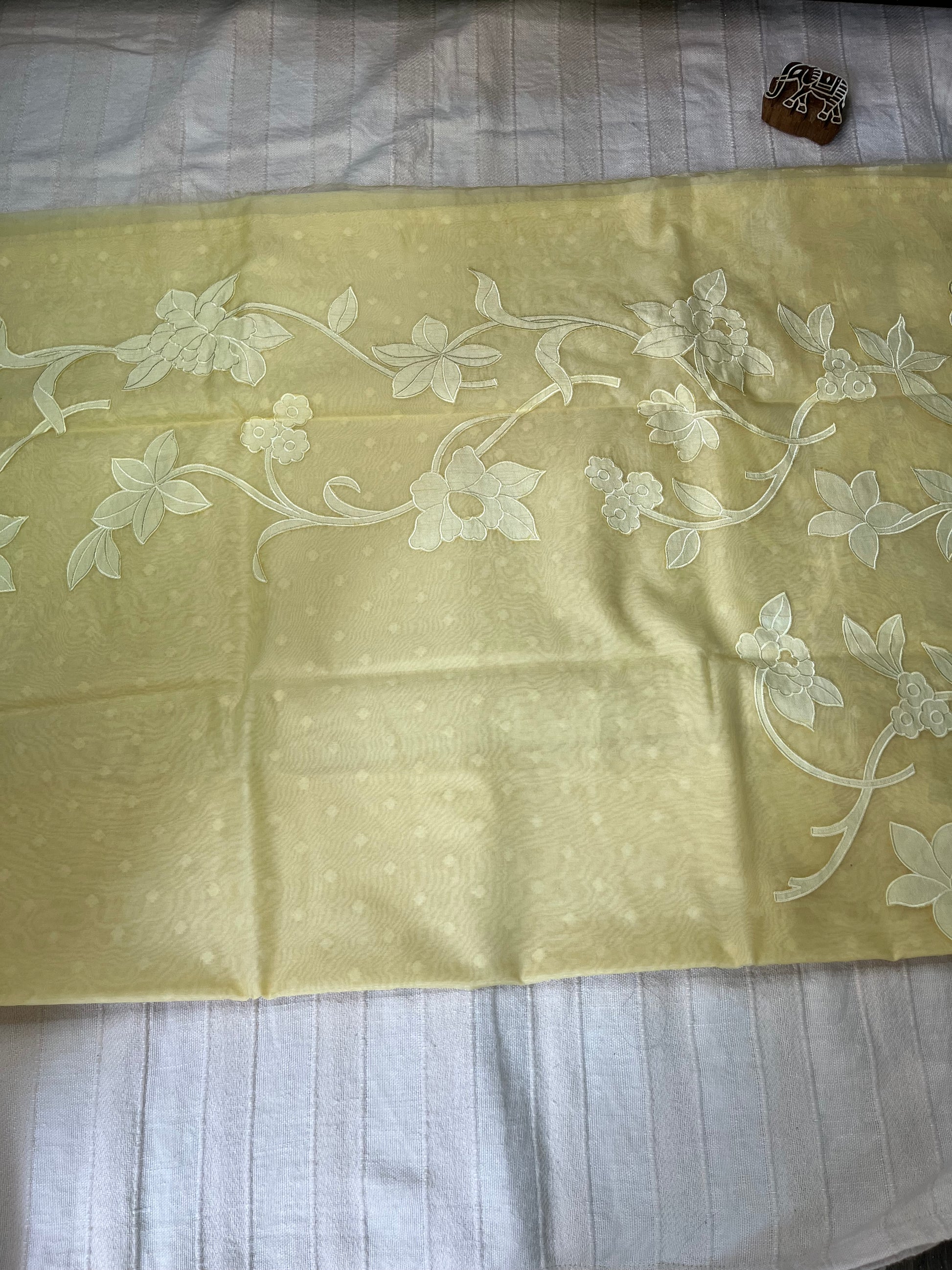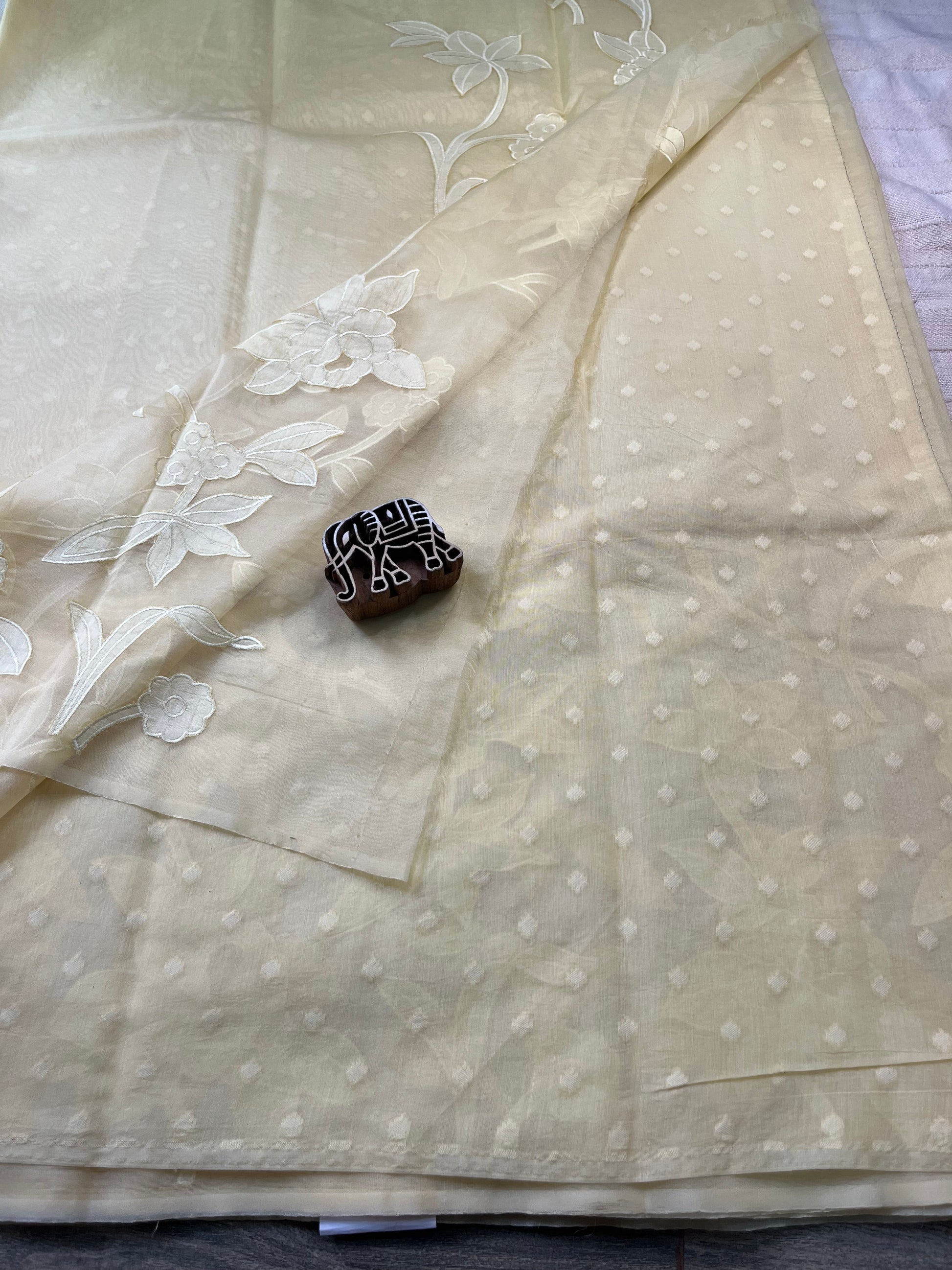- Work: Intricate Hand Appliqué – each motif carefully hand-cut and sewn, reflecting hours of meticulous artistry