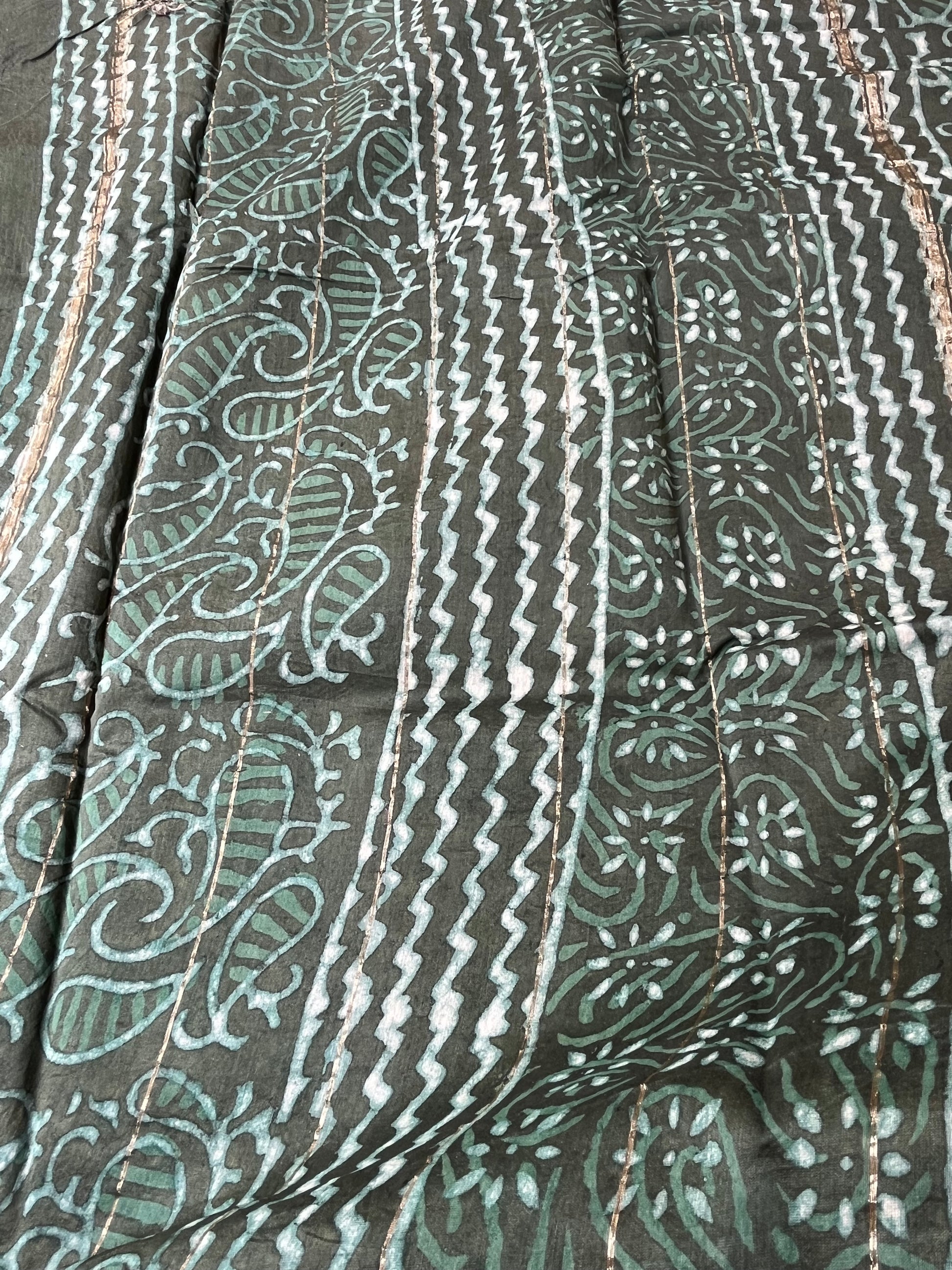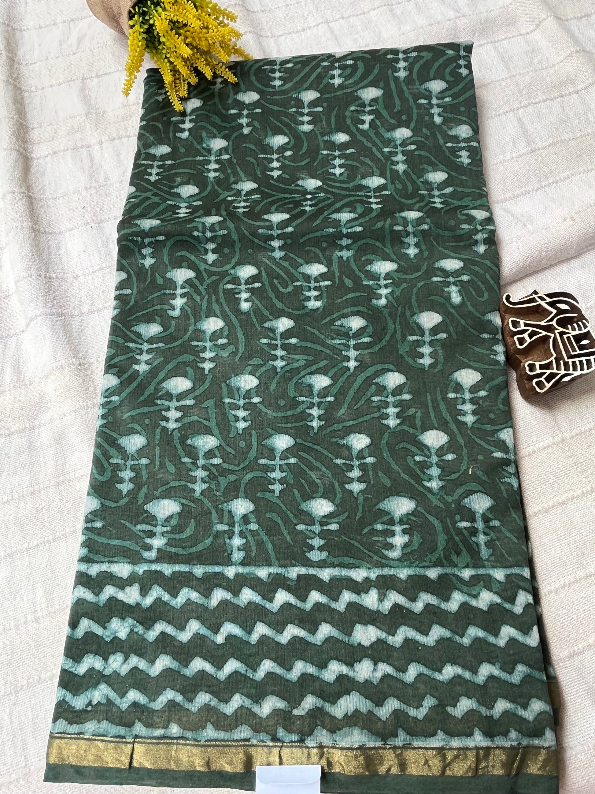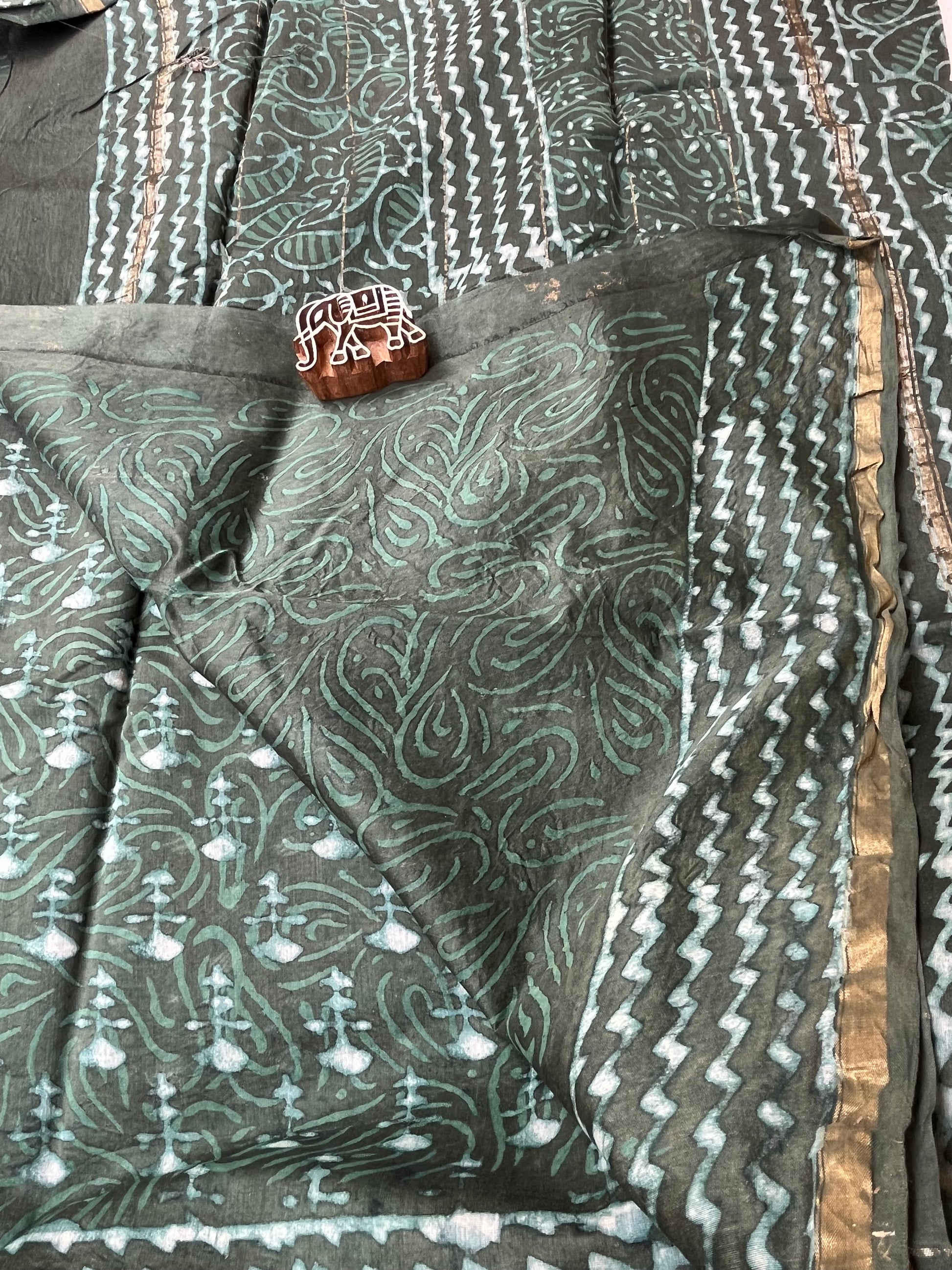 Rama Green Dabu Handblock Chanderi Cotton Silk Saree