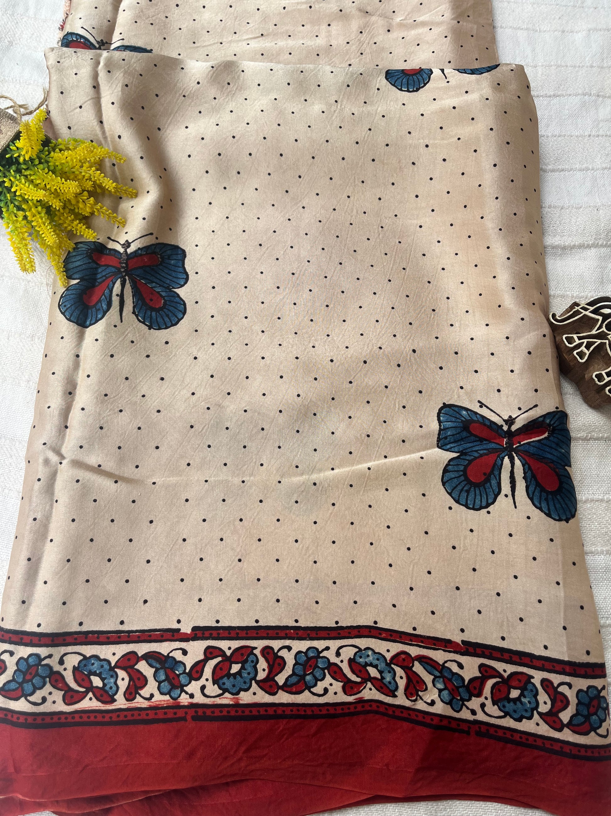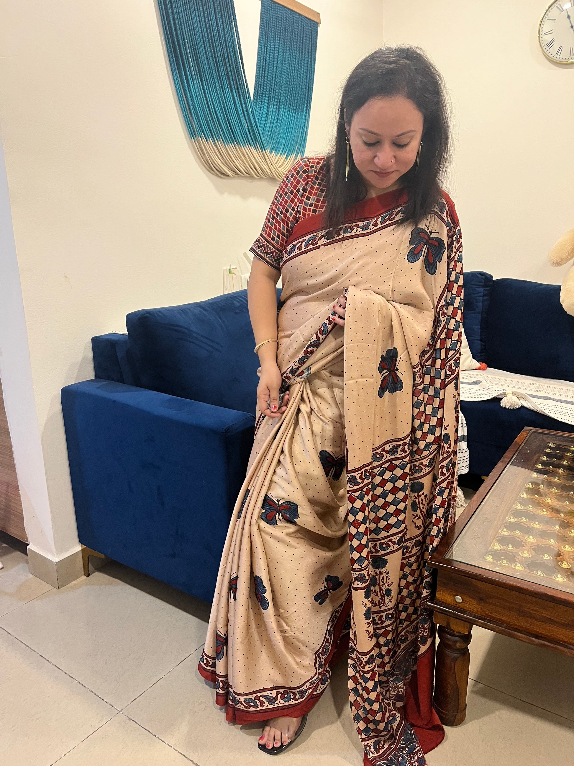 Titli Ajrakh Modal Silk Saree - Beige Red