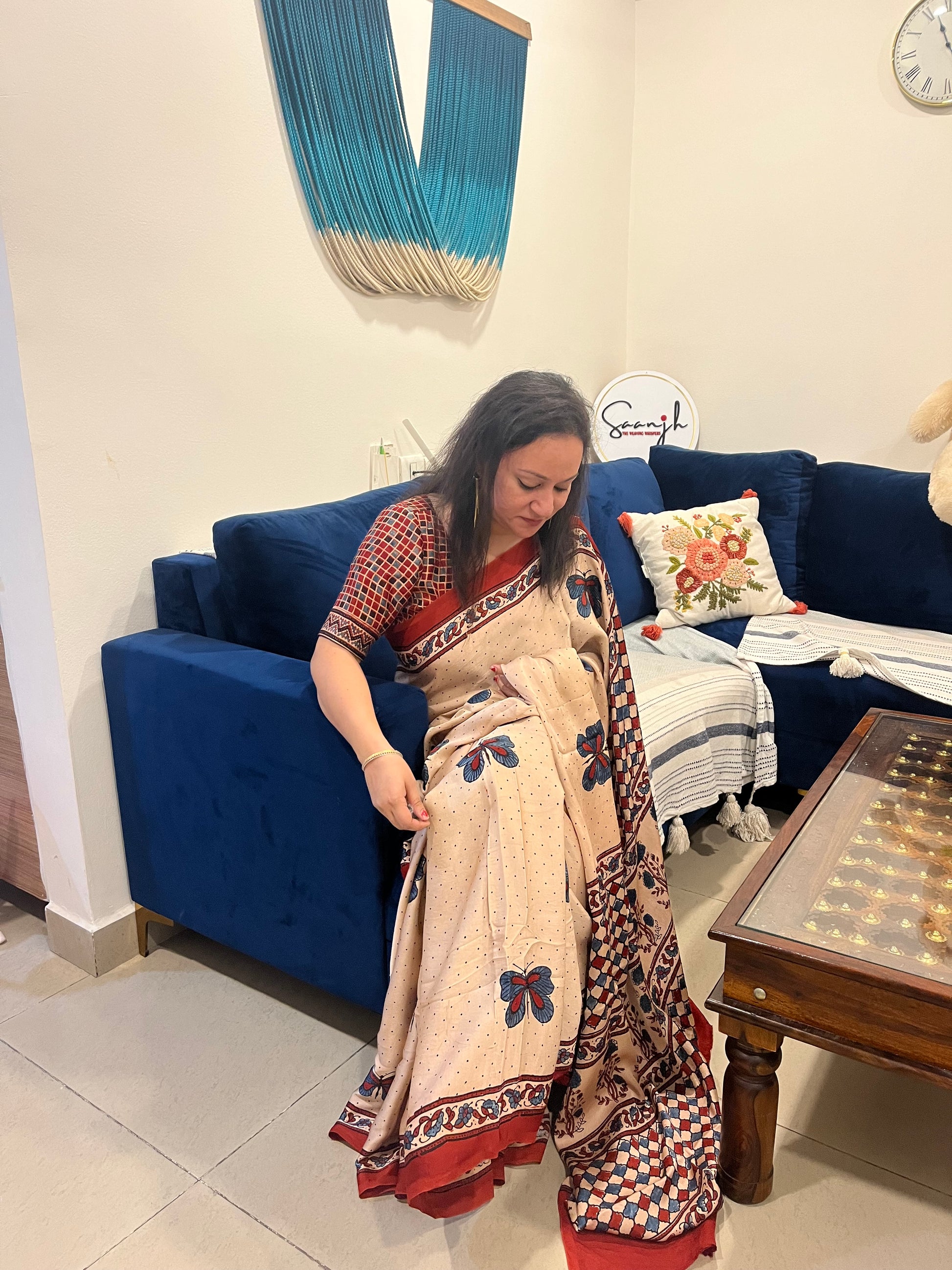 Discover the exquisite elegance of our Ajrakh modal silk sarees, where traditional artistry meets modern sophistication.