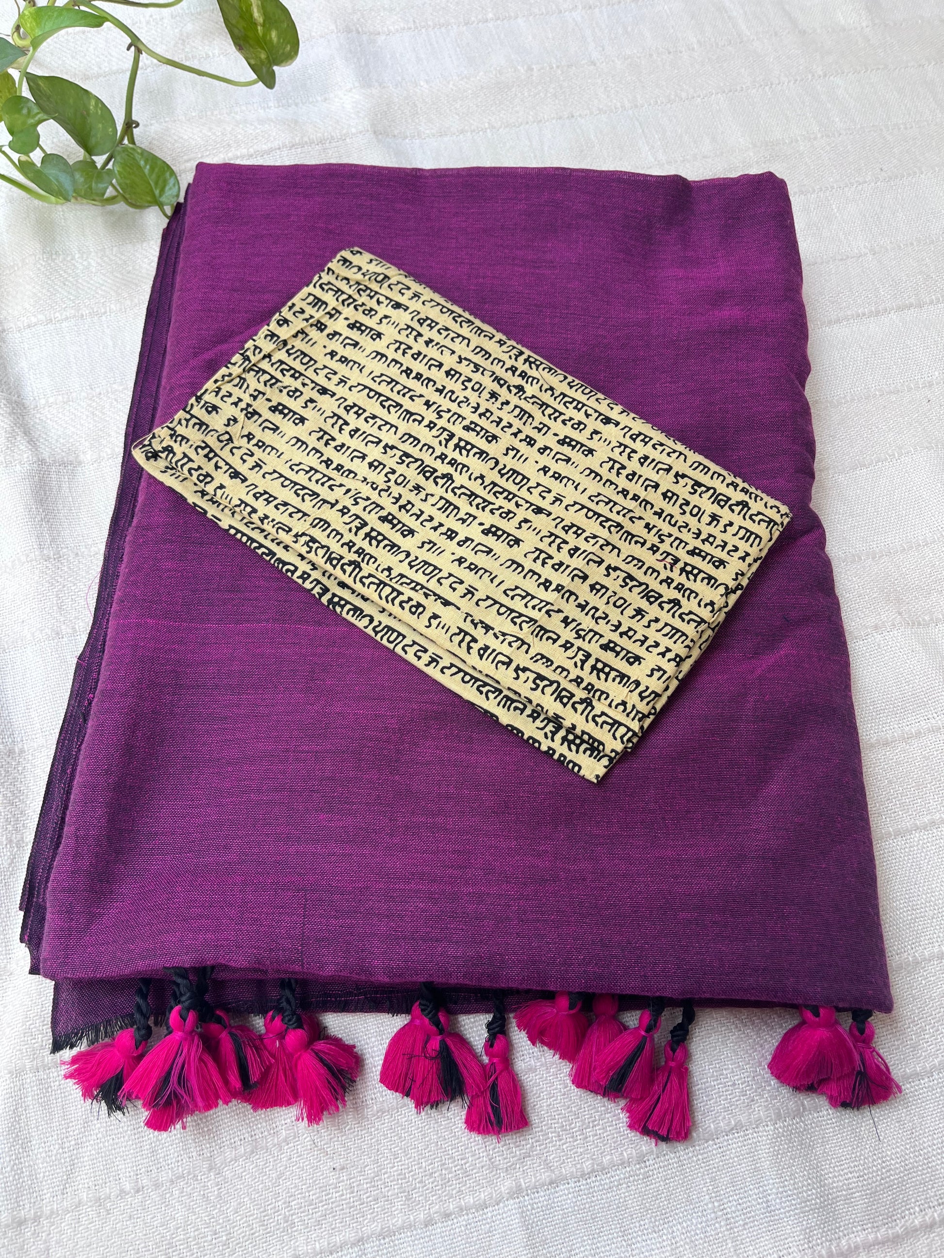 Wine Handloom Khadi Cotton Saree with Kalamkari Blouse Piece